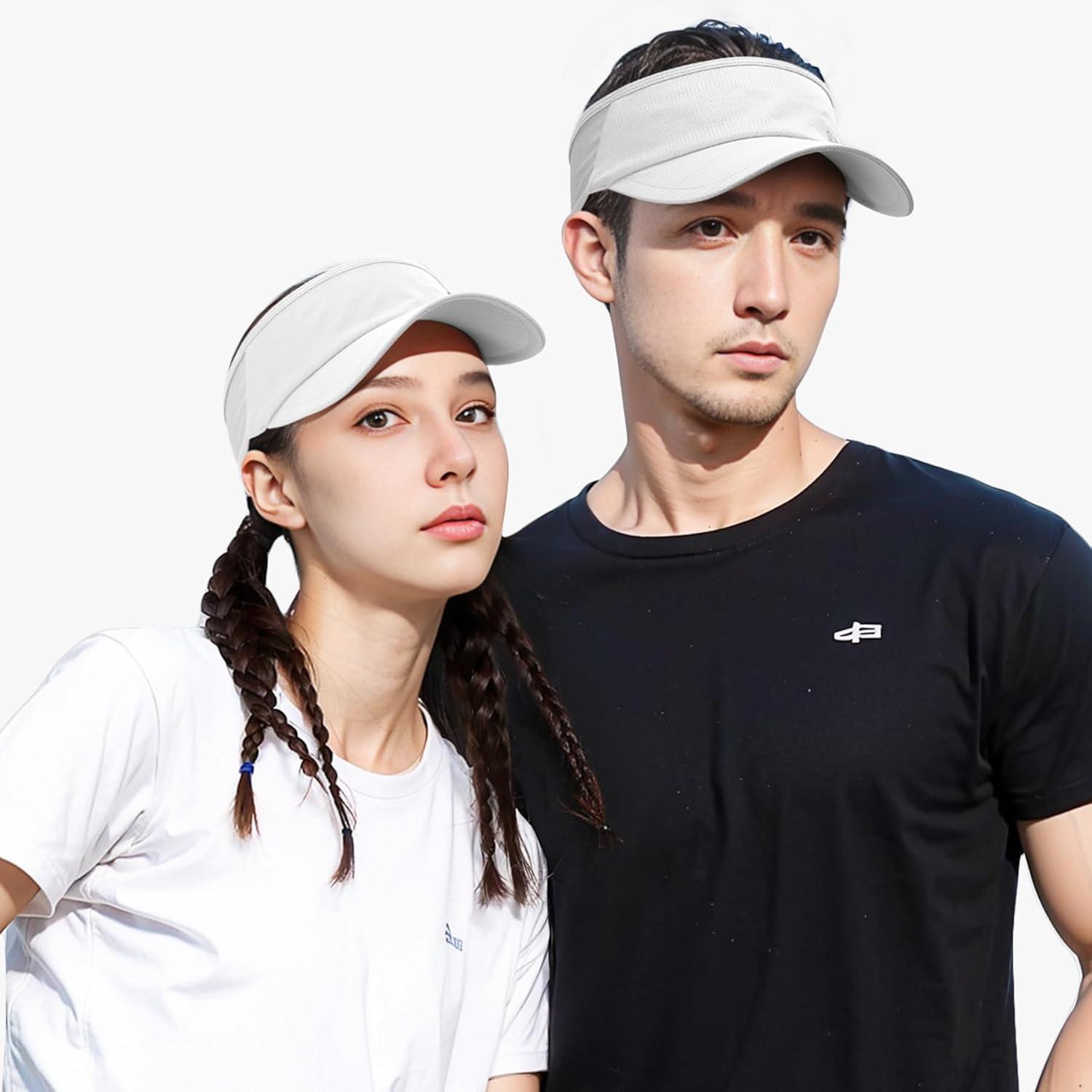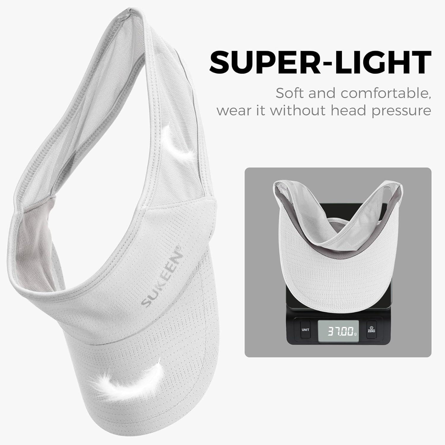 Sukeen 2 Pack Sports Sun Visor Women Men Lightweight Packable Stretchy Visor Hat for Golf, Tennis, Running, Daily Wear(2 White)