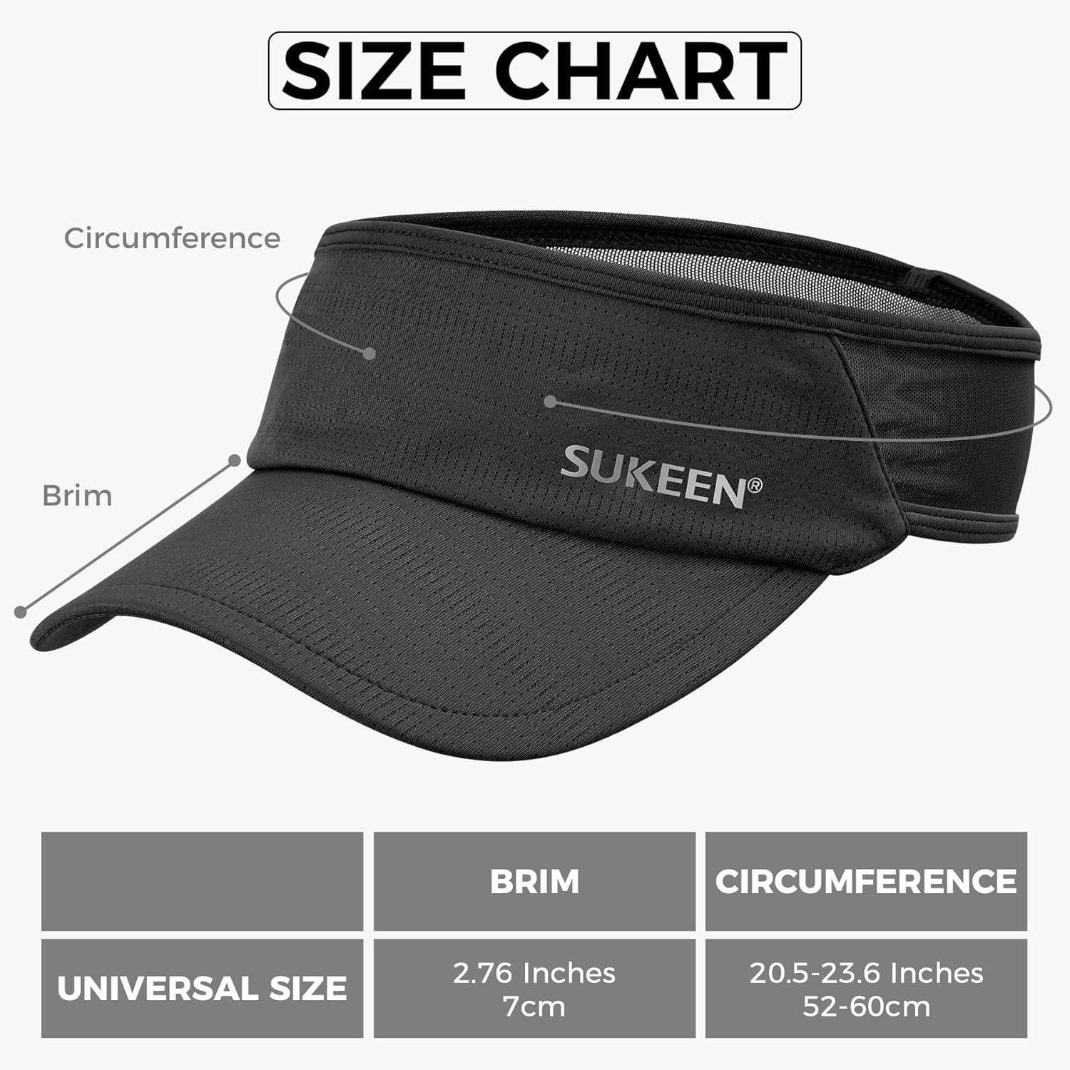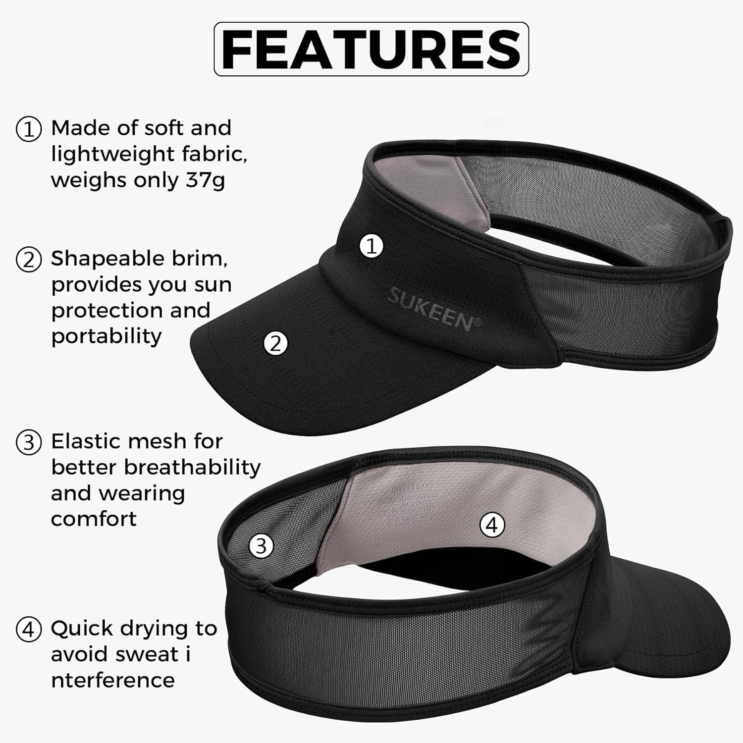 Sukeen 2 Pack Sports Sun Visor Women Men Lightweight Packable Stretchy Visor Hat for Golf, Tennis, Running, Daily Wear(Black/White)