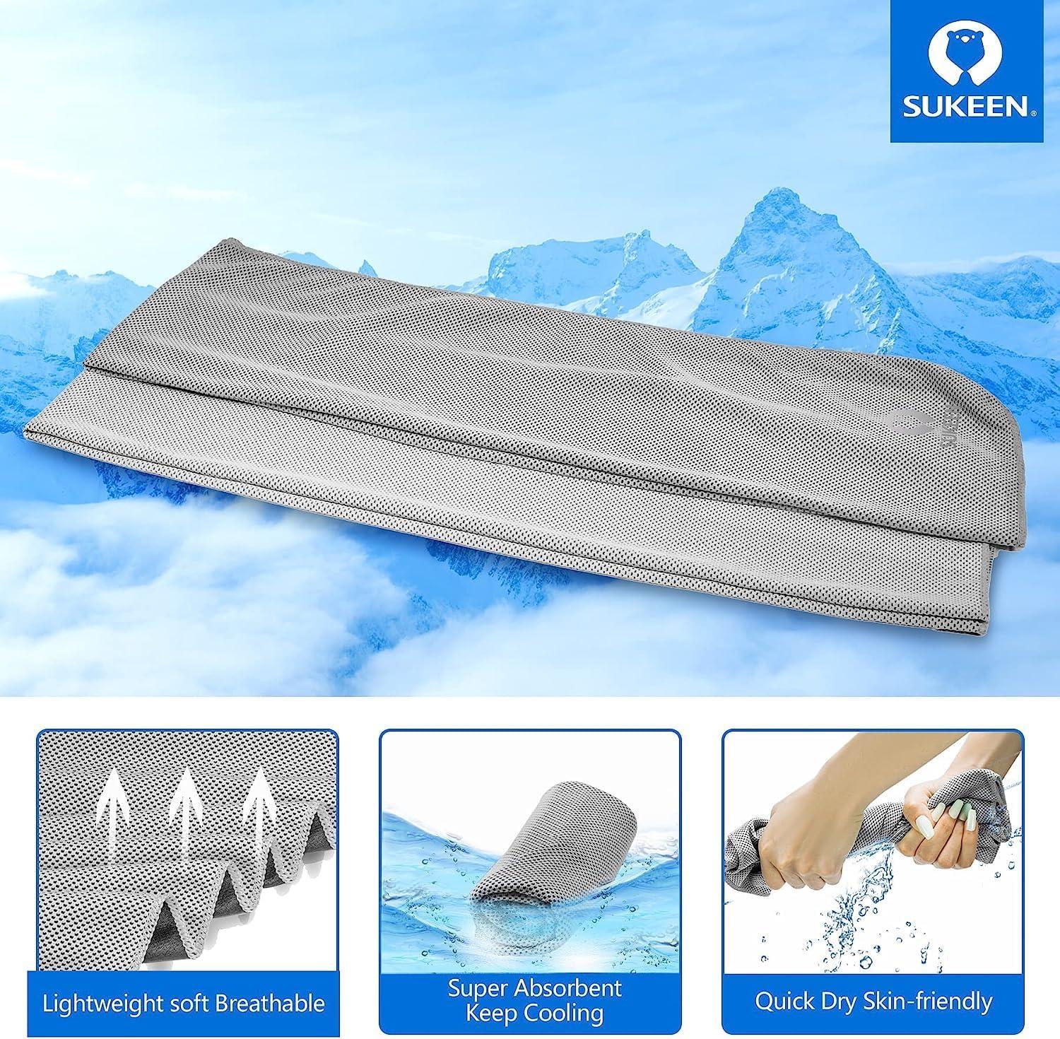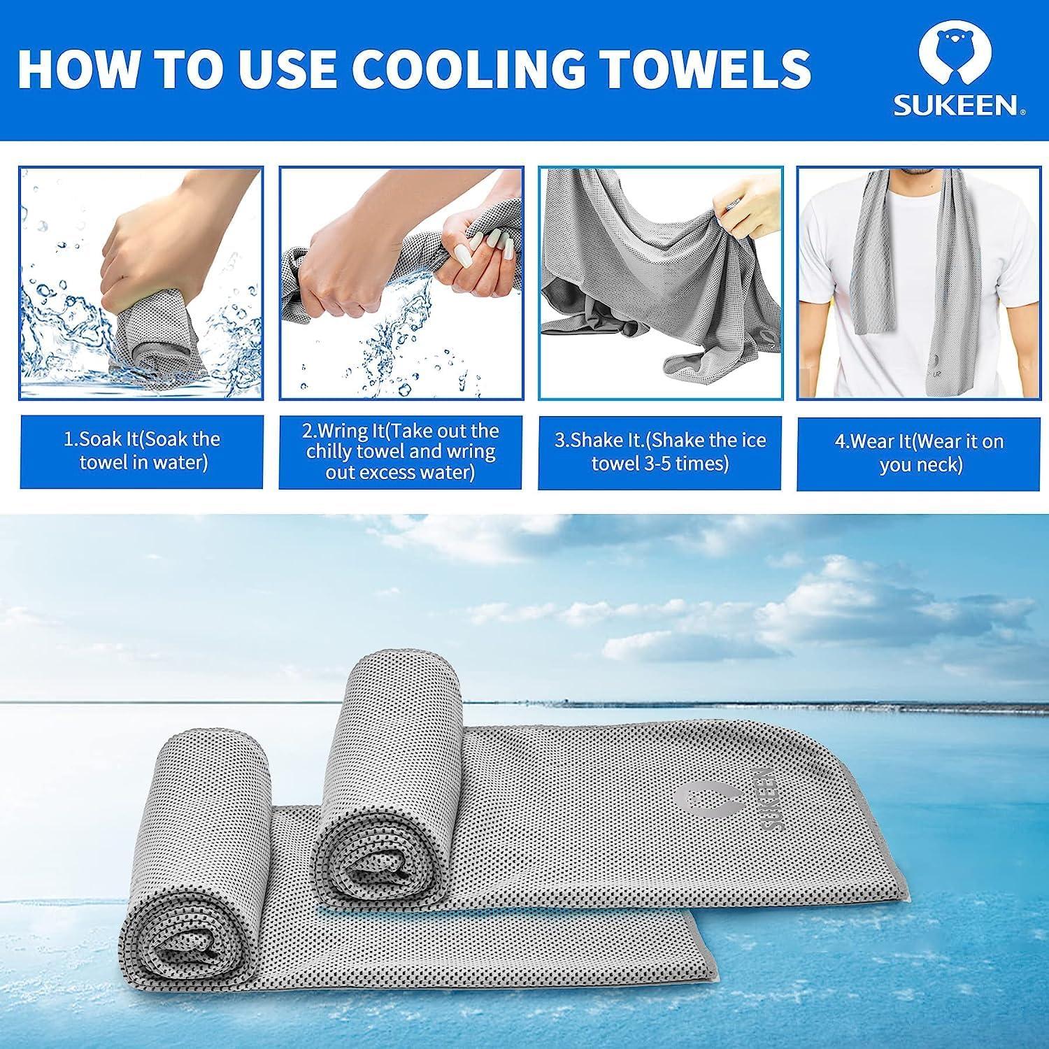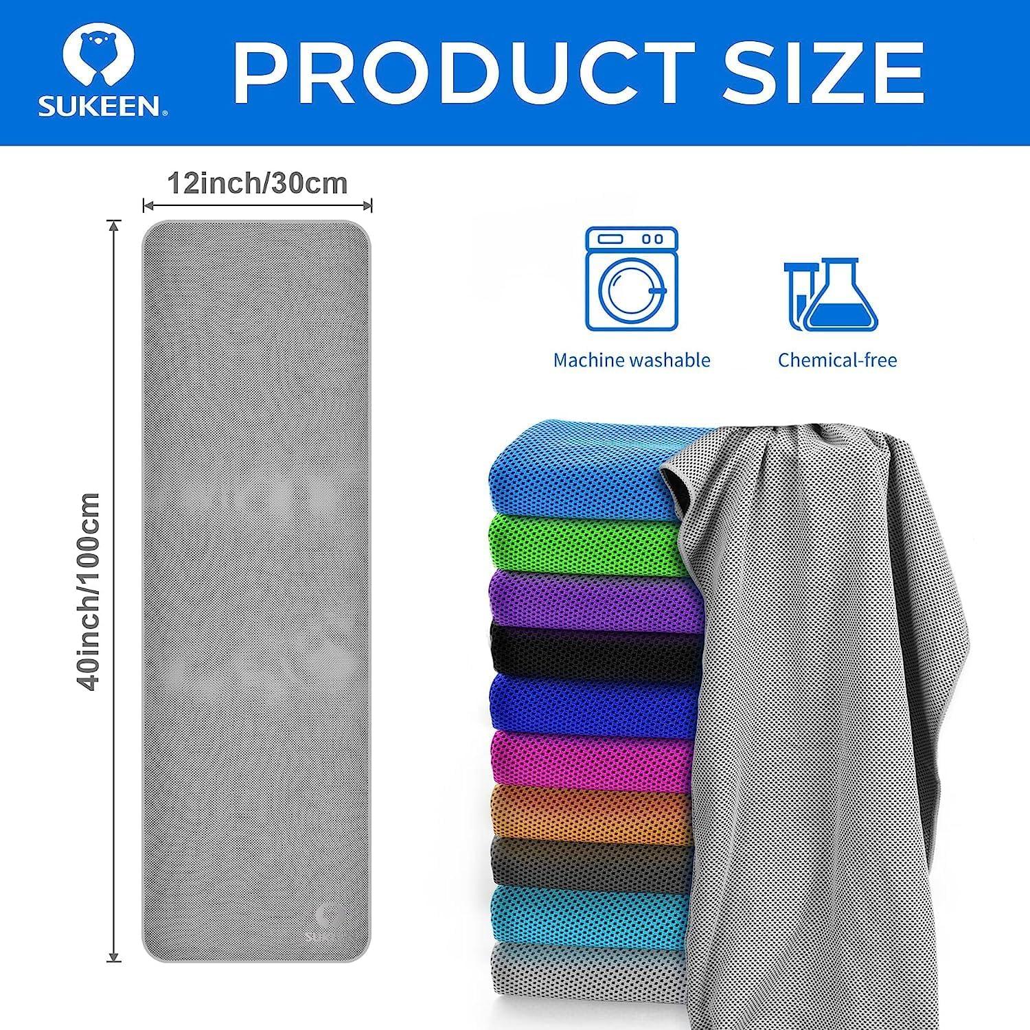 Sukeen 4 Pack Cooling Towel (40″x12″) for Sweat, Quick-Drying Neck Cooling Wraps, Soft & Breathable Chilly Sports Towel for Yoga, Sport, Running, Workout, Cooking, Microfiber(Blue/Pink/Green/Grey/Black/Light Purple)