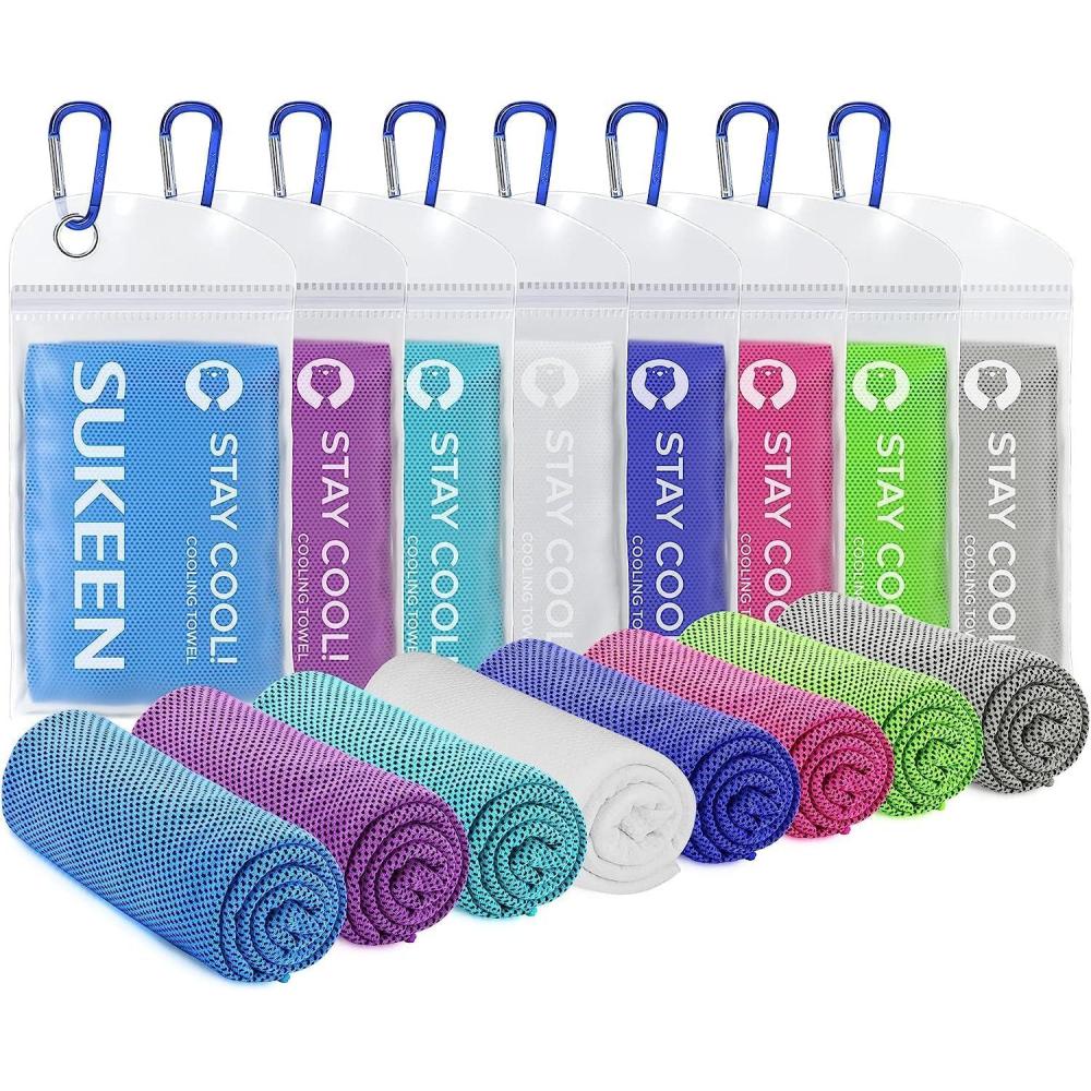 Sukeen 4 Pack Cooling Towel (40″x12″) for Sweat, Quick-Drying Neck Cooling Wraps, Soft & Breathable Chilly Sports Towel for Yoga, Sport, Running, Workout, Cooking, Microfiber(Blue/Purple/Dark Blue/Pink/Green/Grey/White/Lake Blue)