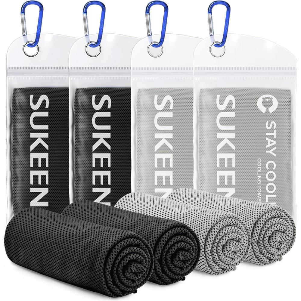 Sukeen [4 Pack Cooling Towel (40″x12″), Soft Breathable Chilly Microfiber Towel for Yoga,Sport,Running,Gym,Workout,Camping,Fitness,Workout & More Activities(Black/Black/Grey/Grey)