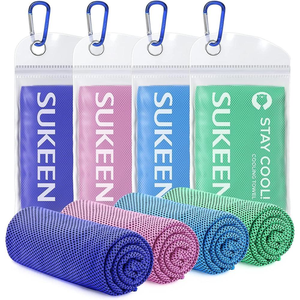 Sukeen 4 Pack Cooling Towels (40″x12″), Ice Towel, Soft Breathable Chilly Towel, Microfiber Towels for Yoga, Sport, Running, Gym, Workout,Camping, Fitness, Workout & More Activities(Dark Blue+palegreen+purple+grey)