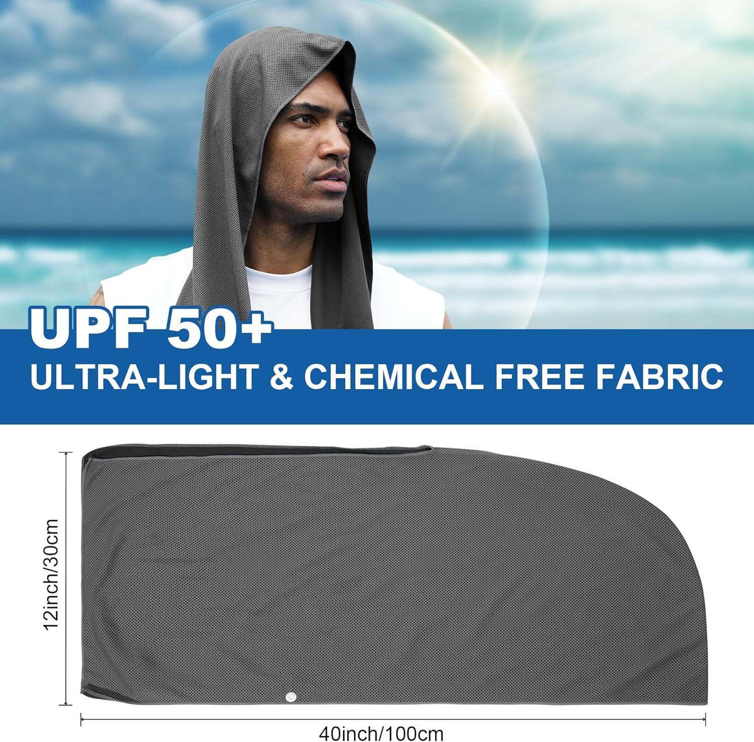 Sukeen Cooling Hoodie Towel for Men, Quick Drying Absorbent Cooling Towels for Neck and Face, UV Sun Protection Cooling Neck Wraps, Sport Workout Camping Cycling Cool Towel for Hot Weather(Dark Grey)