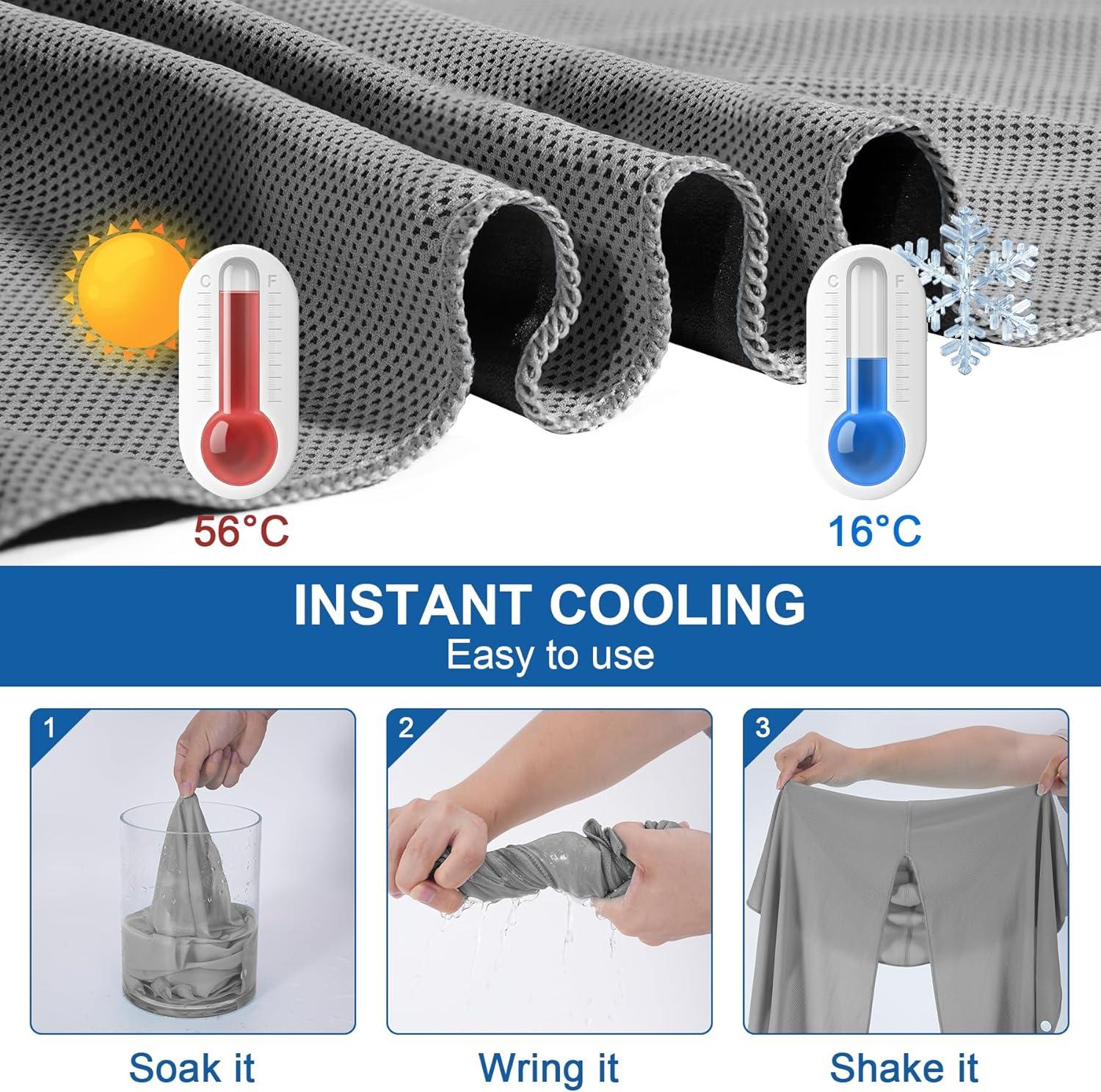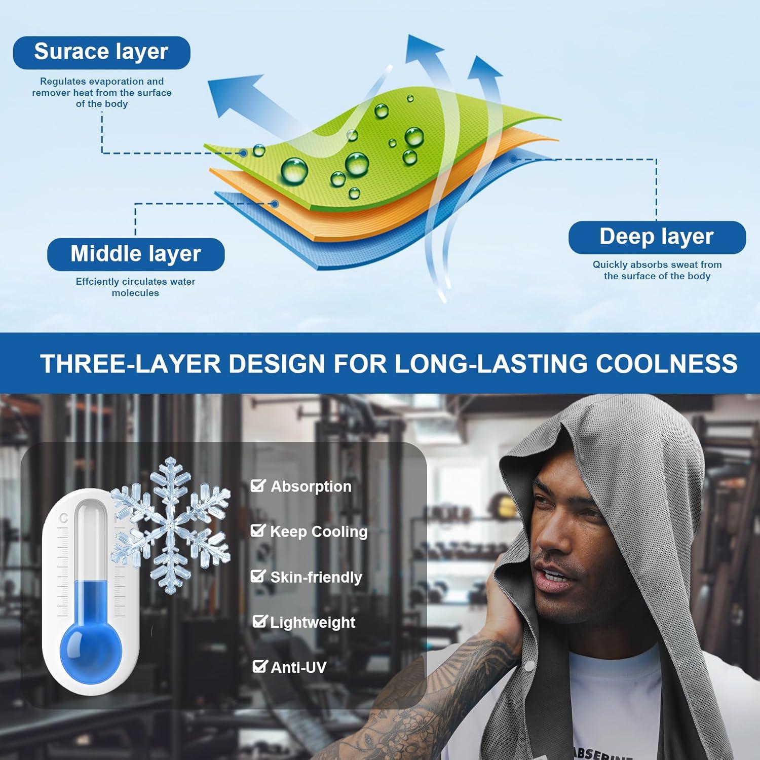 COOLING TOWELS FOR NECK AND FACE: Breathable, quick-drying hoodie towelstays chilled for up to 3 hours (depending on conditions). No chemicals are used for these Cooling Hoodie Towels. It's perfect for hot flashes, outdoor activities, indoor exercise, fever or headache therapy, heatstroke prevention, sunscreen protection, cooling while absorbing.