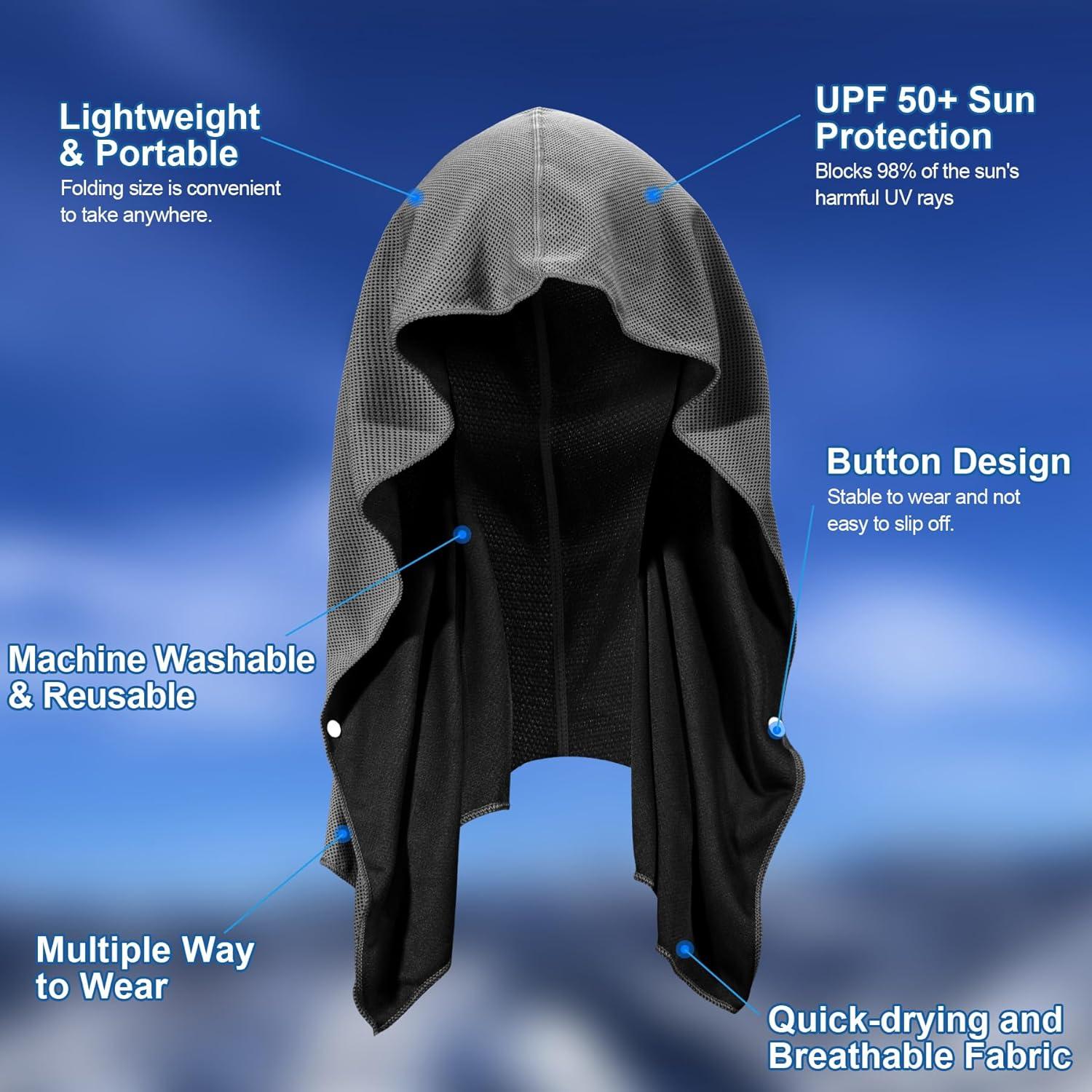 imageSukeen Cooling Hoodie Towel for Men Quick Drying Absorbent Cooling Towels for Neck and Face UV Sun Protection Cooling Neck Wraps Sport Workout Camping Cycling Cool Towel for Hot WeatherDark GreyGrey