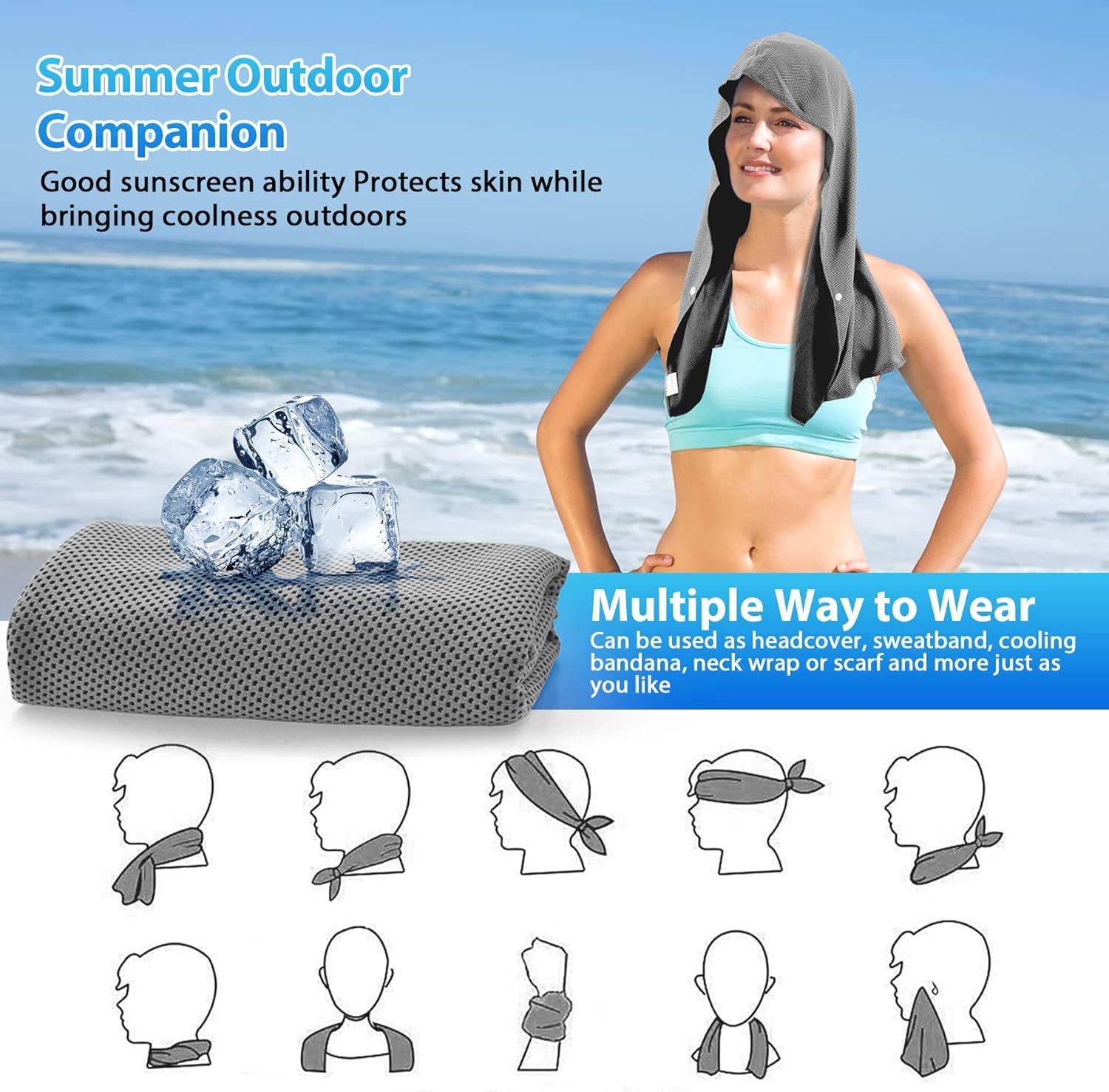 COOLING TOWELS FOR NECK AND FACE: Breathable, quick-drying hoodie towelstays chilled for up to 3 hours (depending on conditions). No chemicals are used for these Cooling Hoodie Towels. It's perfect for hot flashes, outdoor activities, indoor exercise, fever or headache therapy, heatstroke prevention, sunscreen protection, cooling while absorbing.