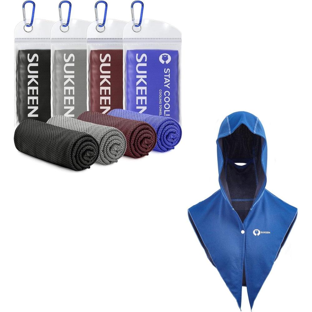 Sukeen Cooling Hoodie Towel, UV Protection Cooling Towels for Neck and Face, Lightweight Absorbent Cooling Neck Wraps for Workout, Sports, Cycling, Cooling Towels for Hot Weather