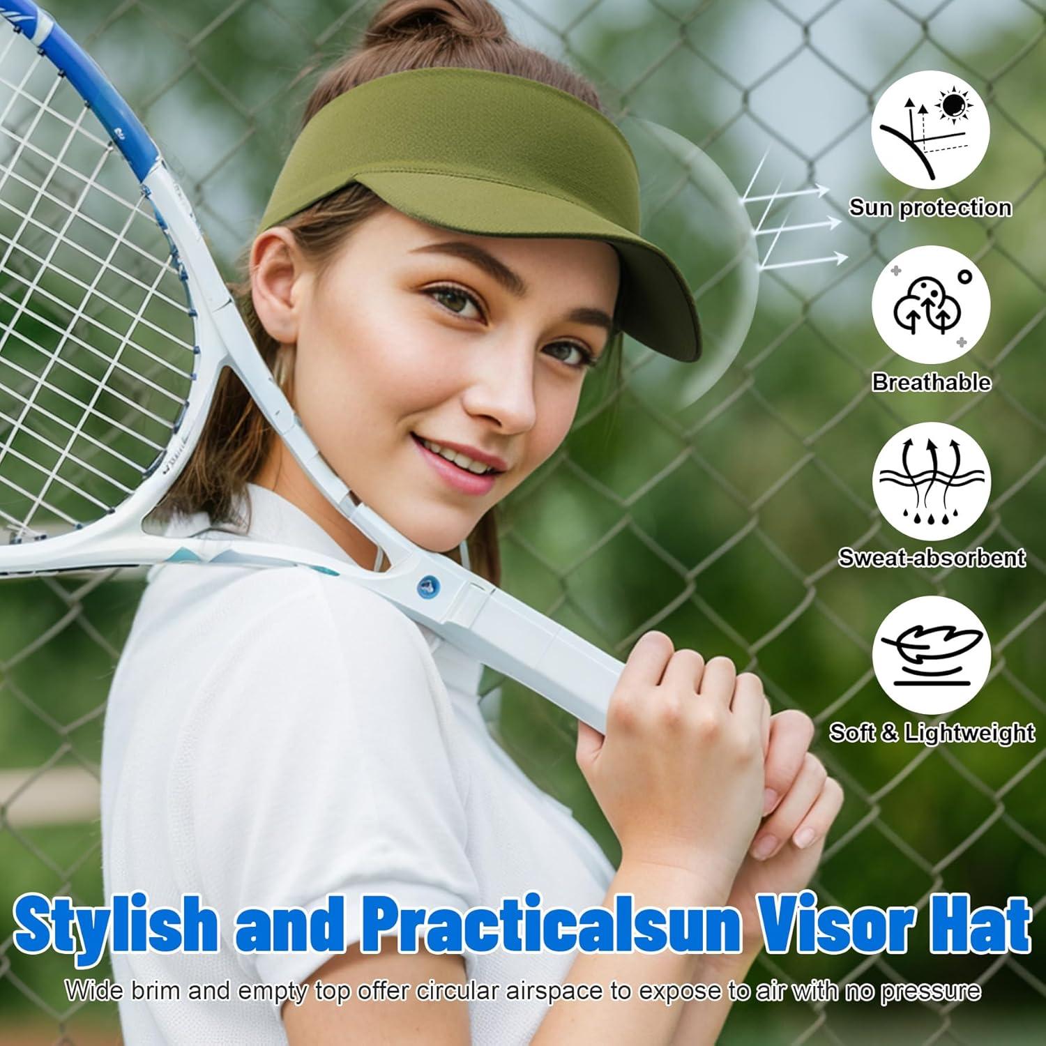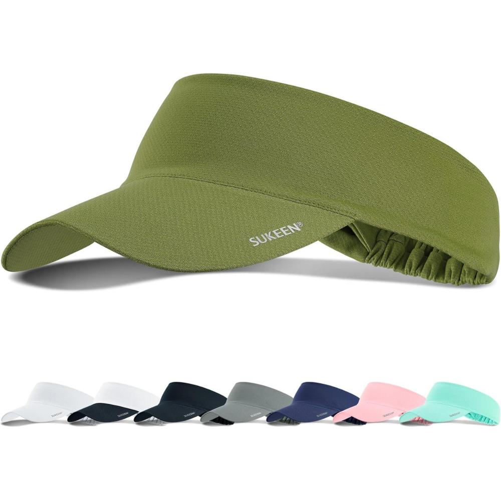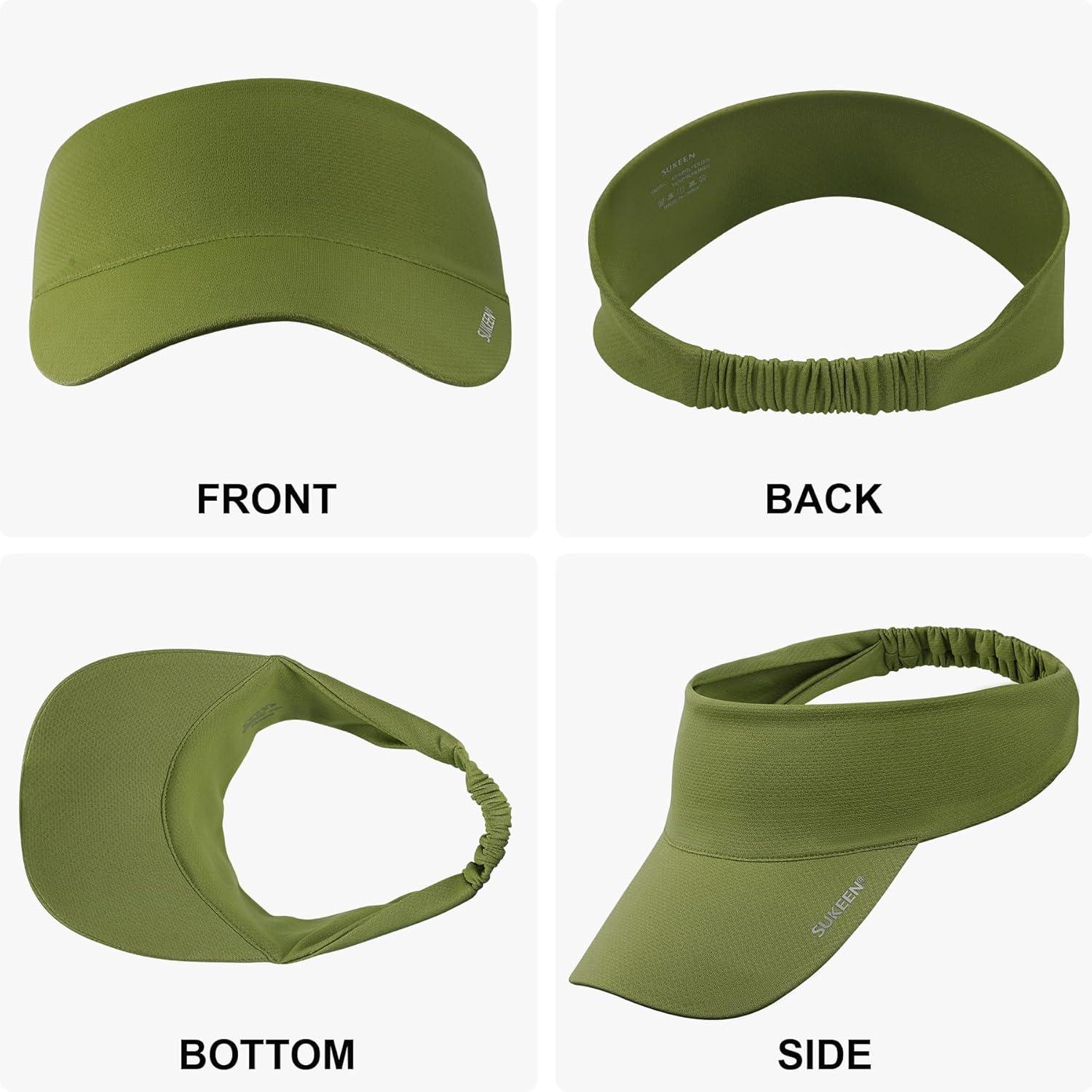 Sukeen Cooling Stretchy Visor Free Size Cool Hat with UV Protection Brim Peak Vizor for Golf, Tennis, Cycling, Running(Army Green)