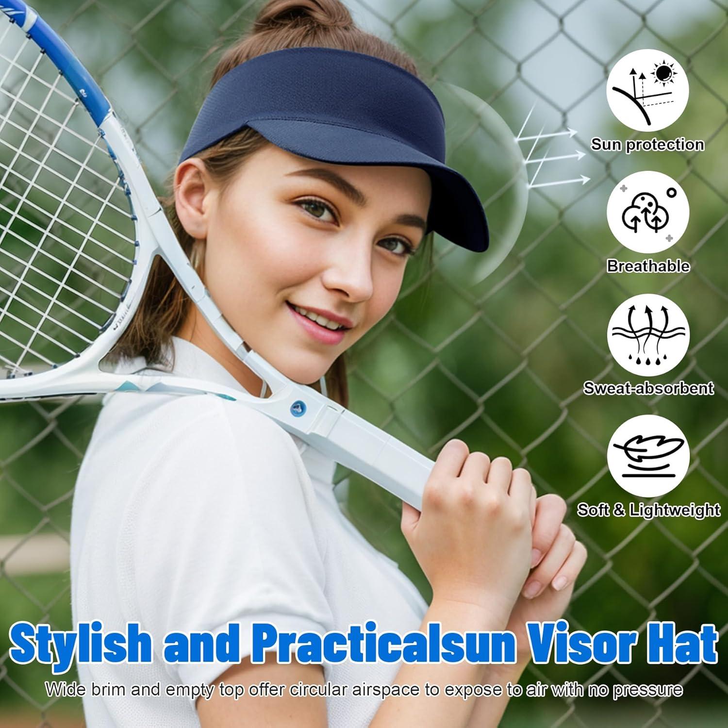 Sukeen Cooling Stretchy Visor Free Size Cool Hat with UV Protection Brim Peak Vizor for Golf, Tennis, Cycling, Running(Navy Blue)