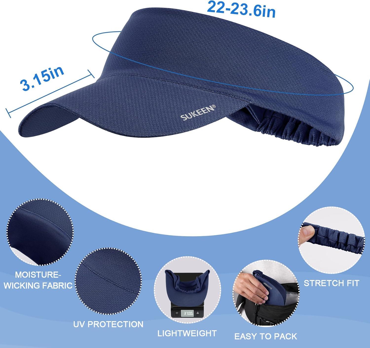 Save up to 40% on Sukeen Cooling Stretchy Visor Free Size Cool Hat with UV Protection Brim Peak Vizor for Golf, Tennis, Cycling, Running(Navy Blue) styles during our end-of-season sale.