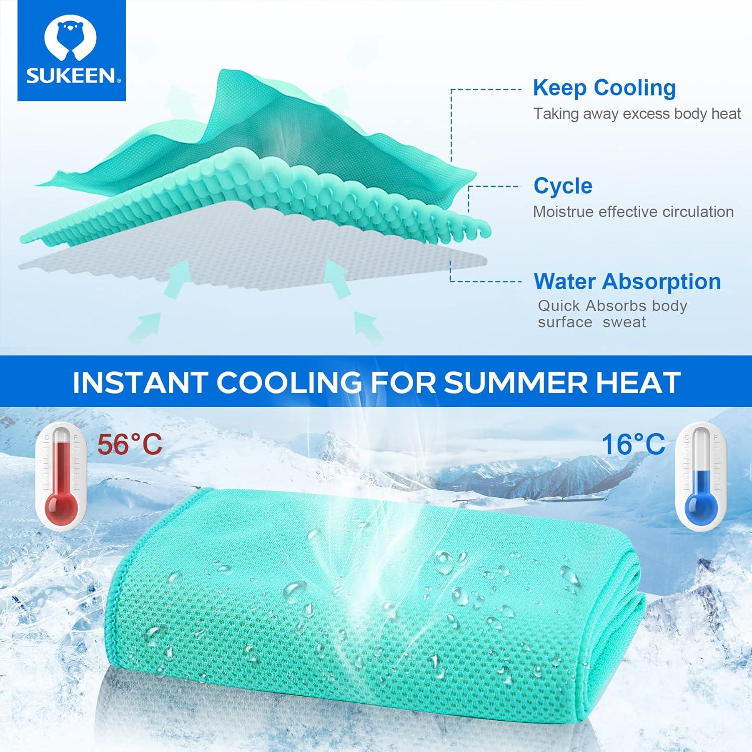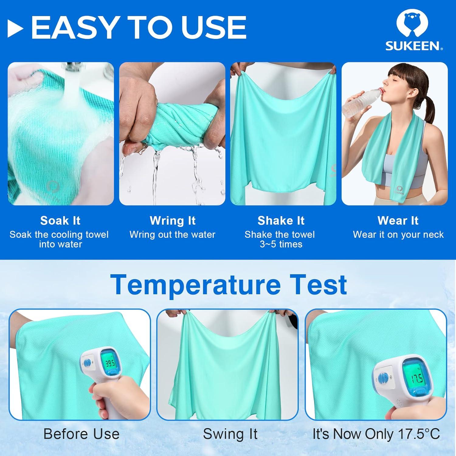 INSTANT COOLING & REUSABLE: Cooling towels are very easy to use and activate, simply soak it, wring it, snap it and wrap it, to reactivate, simply rinse and repeat the process, then you can reuse it so many time. Sukeen cooling towels is machine washable, and won't fade over time.