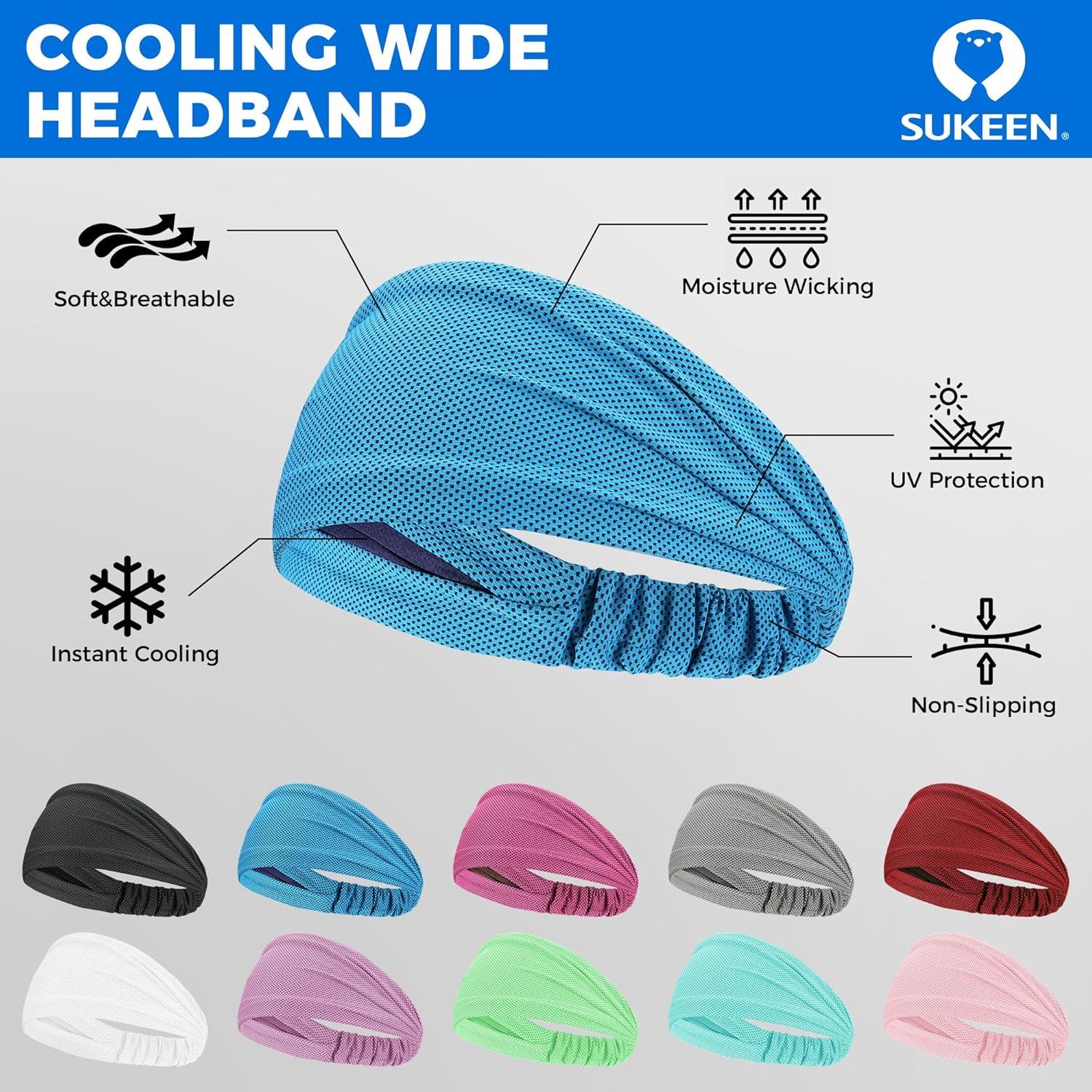 Versatile Wide Headbands: Available in a range of bright colors, Sukeen cooling headbands easily elevate your look, perfect in everyday wearing and all kinds of sports activities like yoga, soccer, Running, Traveling, Working, Fitness, basketball, baseball, football, tennis, and so on