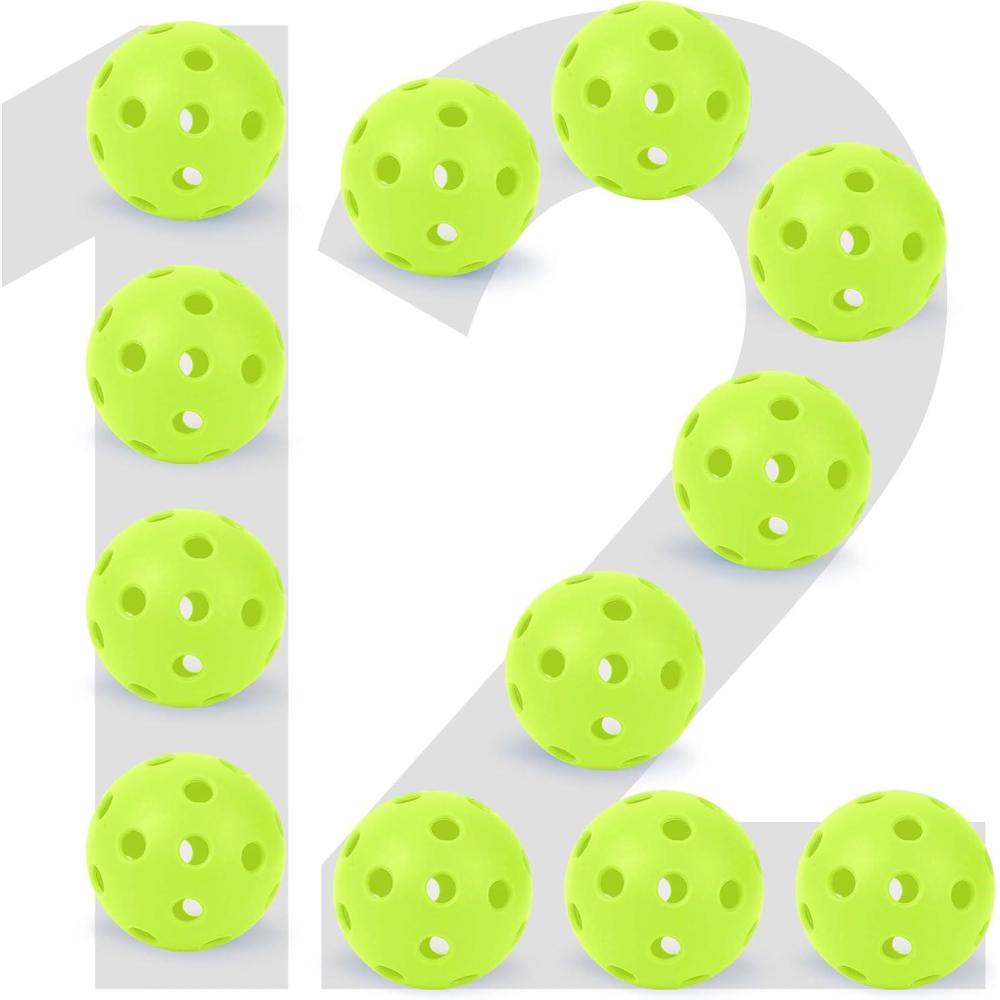 imageSukeen Indoor Pickleball Balls with Bag  26 Holes Pickle Ball Indoor Pickleballs  High Bounce Pickleball Balls Indoor  Pickle Balls for Beginner Intermediate Player 12 Pack  Neon Green