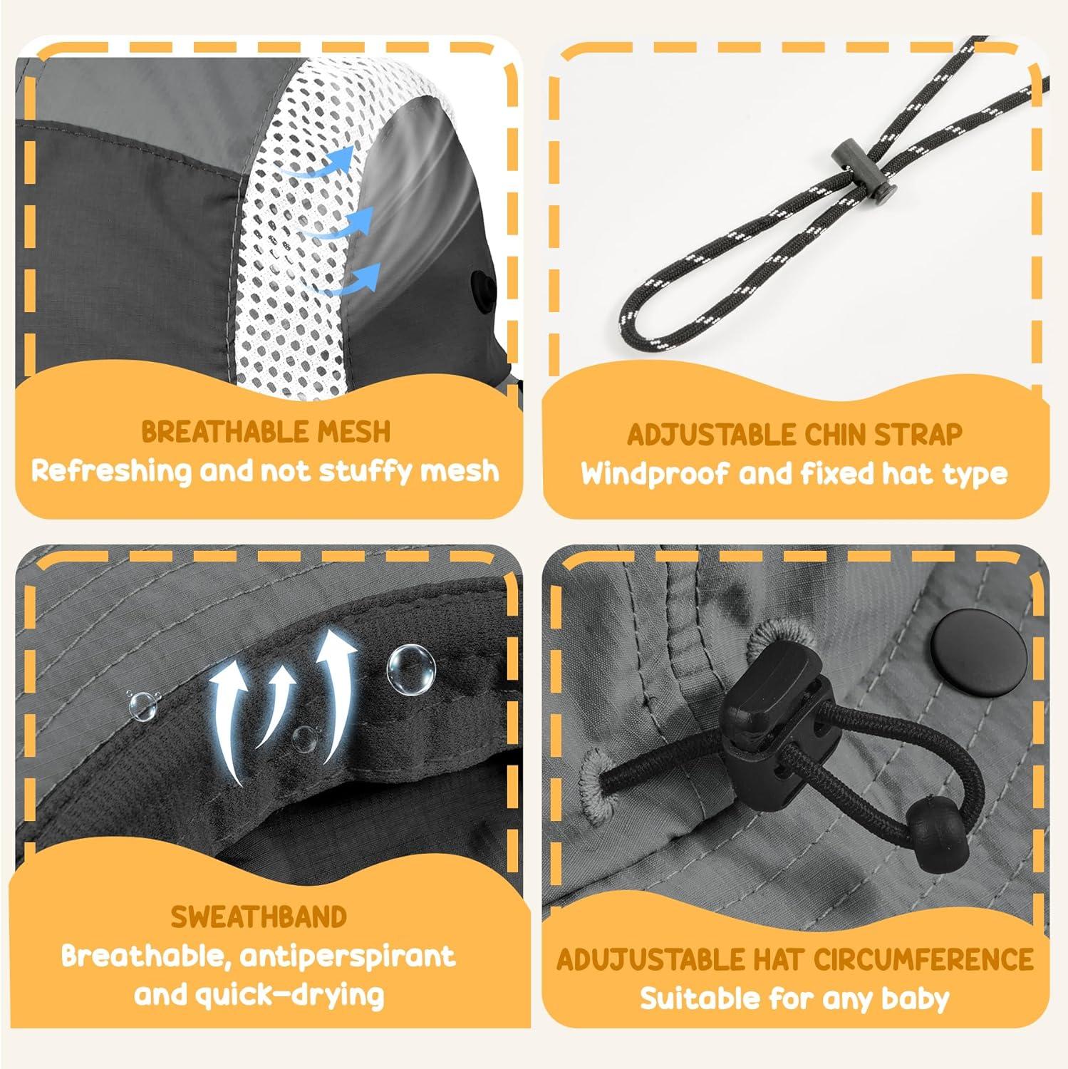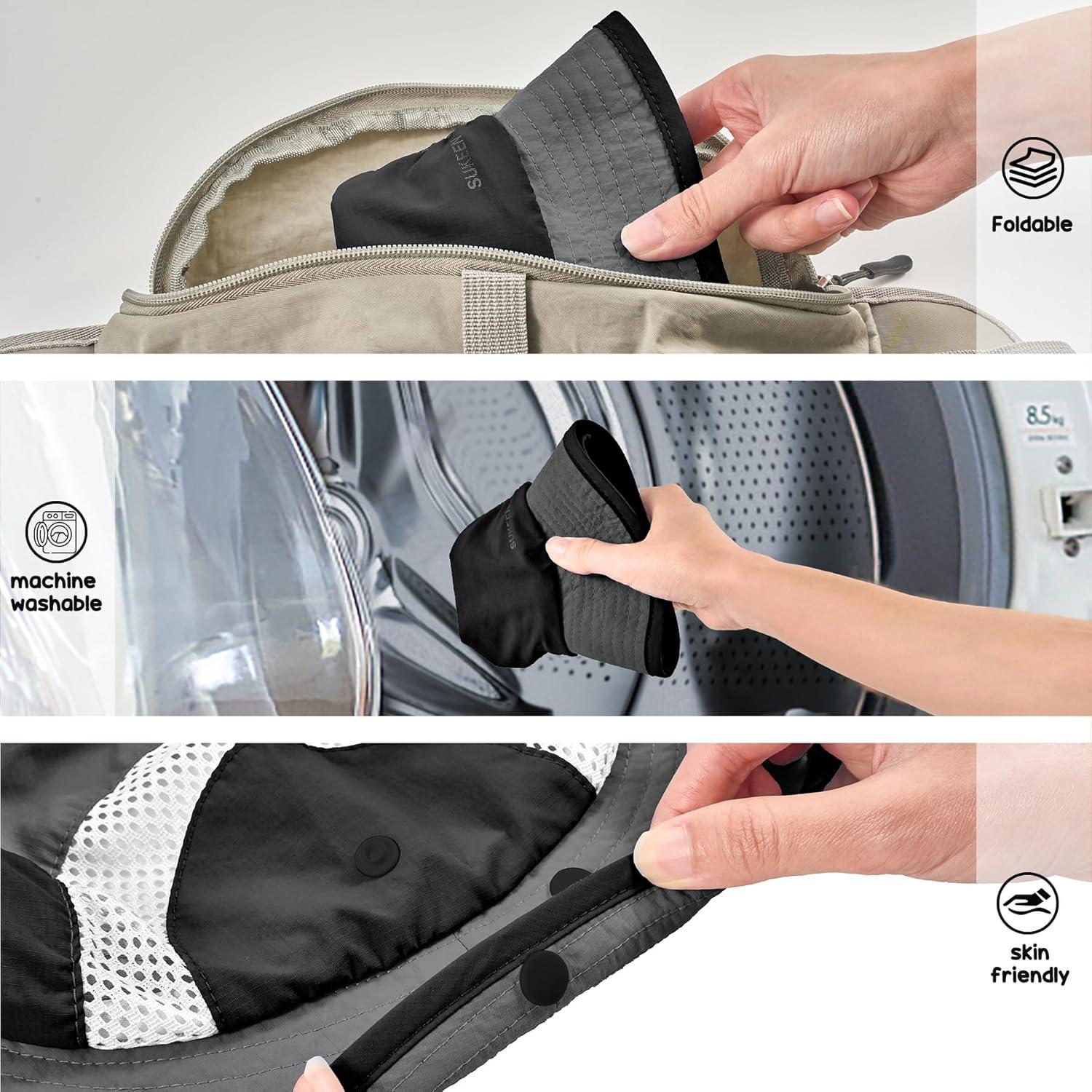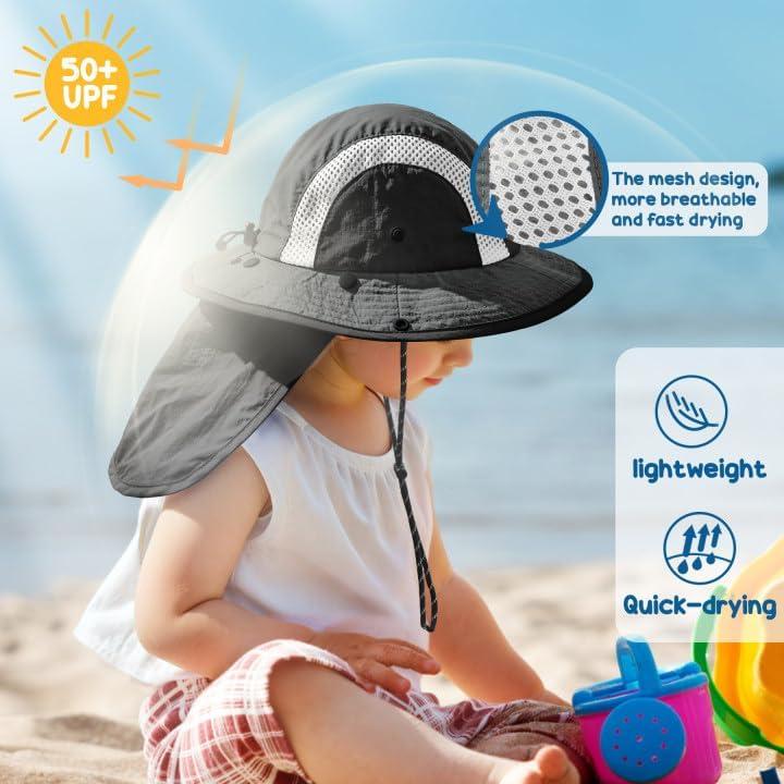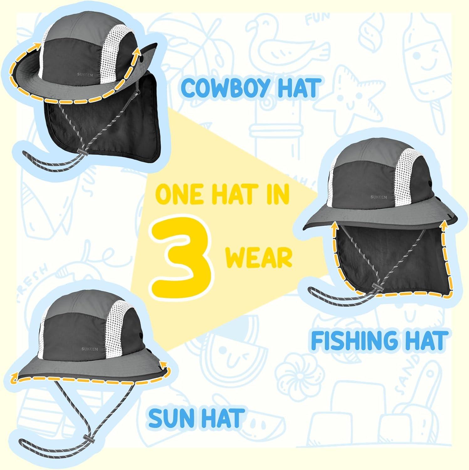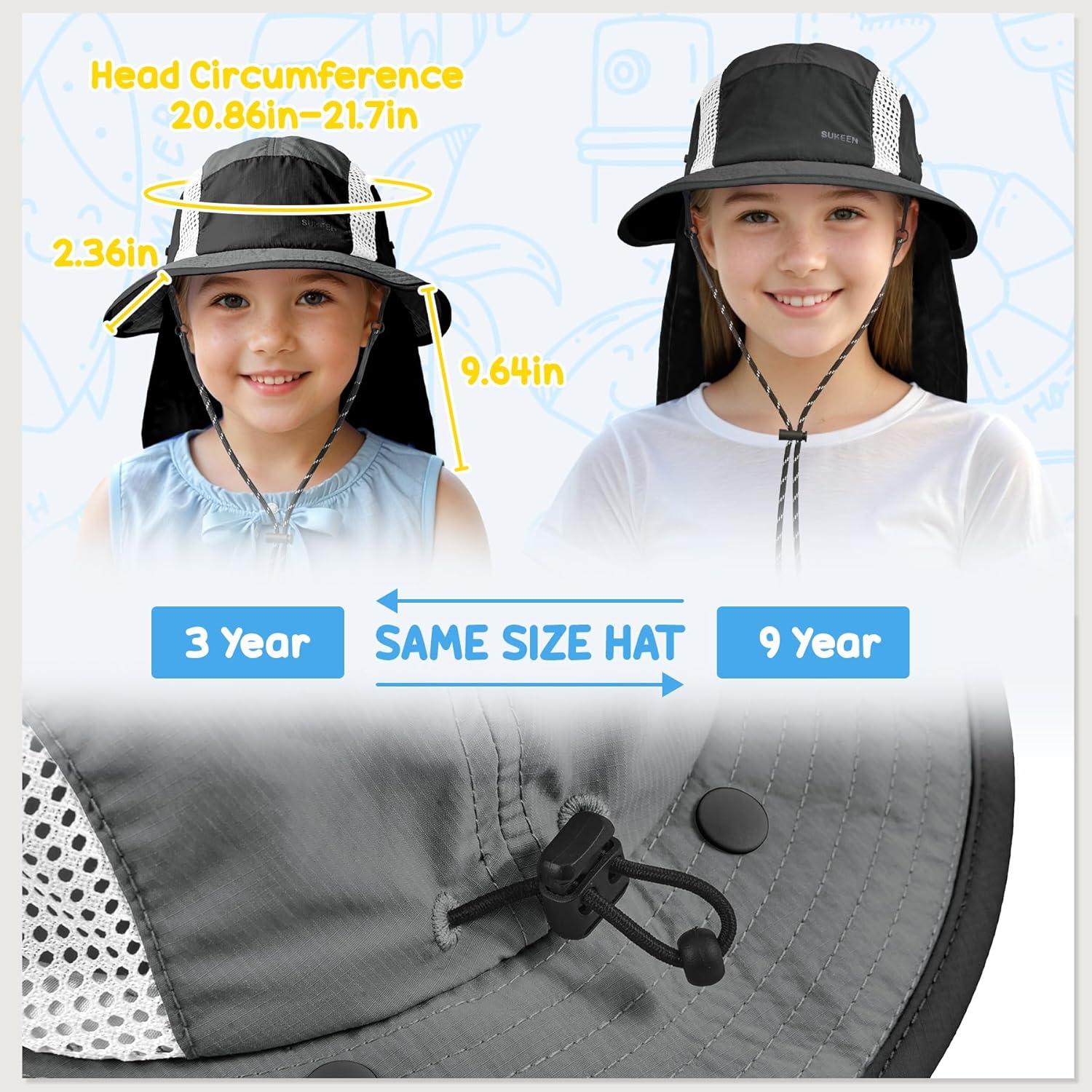 Sukeen Kids Sun Hats with Neck Flap 3 Ways to Wear Foldable Bucket Hat for Girls Boys Lightweight Kids Beach Hat for Outdoors(Black)