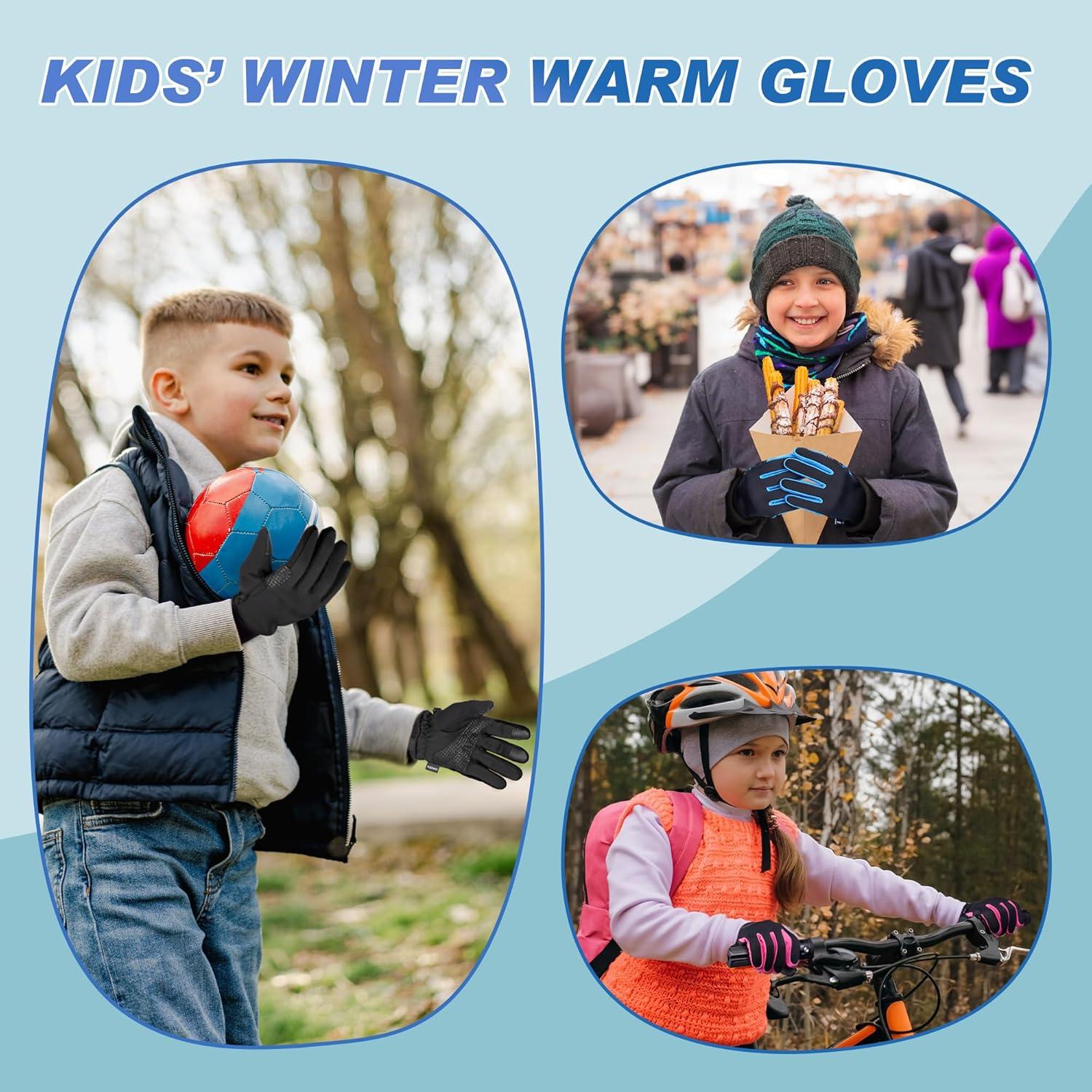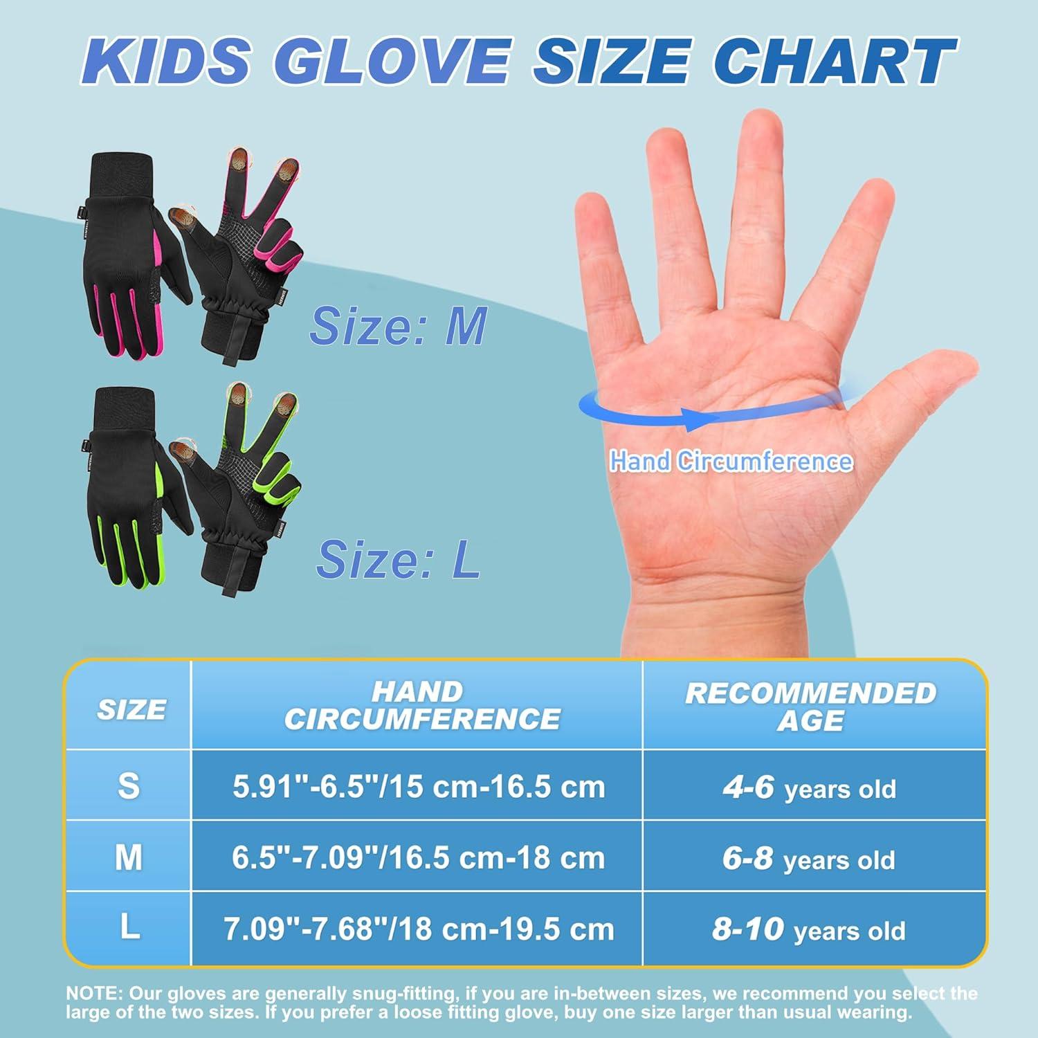 Soft and Comfortable Kids Winter Gloves: Crafted from high-quality materials, contains 73% polyester and 10% nylon, kids gloves feature a soft, skin-friendly and warm lining that's perfect for temperatures above 32°F (0°C); ideal for outdoor play in fall and early winter, school, running, cycling