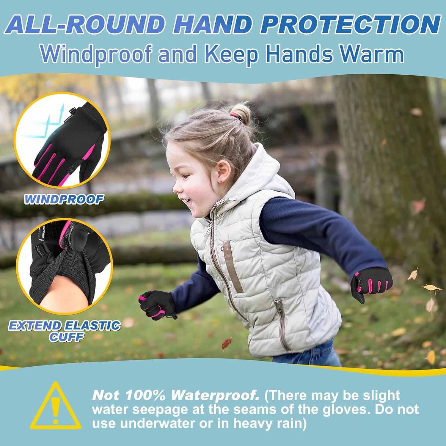 Windproof Kids Winter Gloves: The elastic cuffs of our winter gloves for kids provide a snug and secure fit, keeping chilly winds out and little hands warm and dry; please note that the kids work gloves are not 100% waterproof, avoid using them underwater or in heavy rain