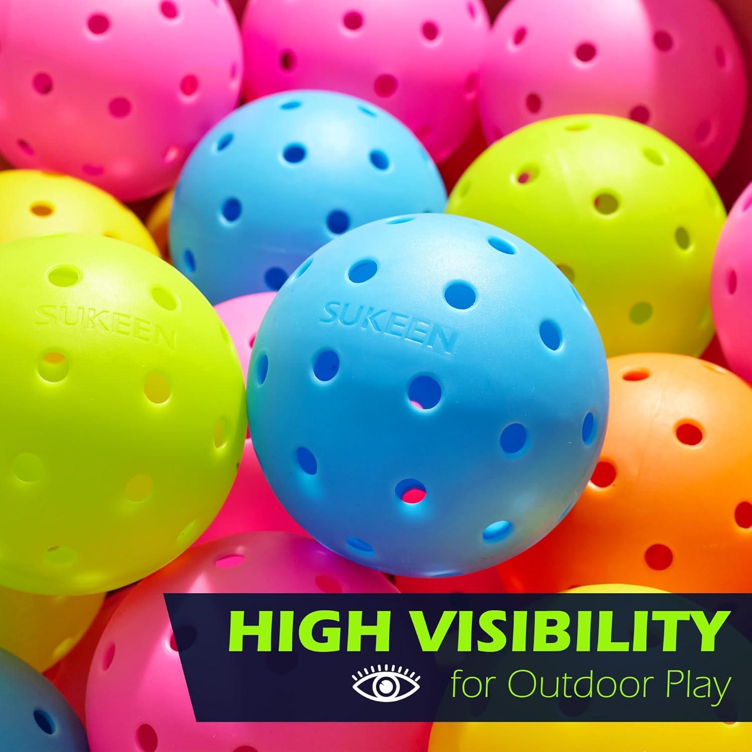 High Quality: Sukeen pickleballs meet USAPA standards for high performance and durability; each pickleball is guaranteed to be in perfect shape, crack-resistant and no deformation, and can withstand rough outdoor surfaces and different weather conditions