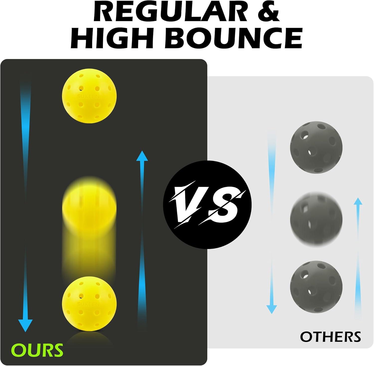 Consistent Bounce: Each pickleball has a full surface, ensuring a consistent and stable bounce on any indoor or outdoor court, allowing players to better control the pickleball, achieve reliable spin, confidently unleash their potential
