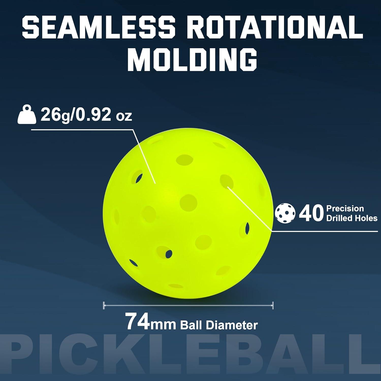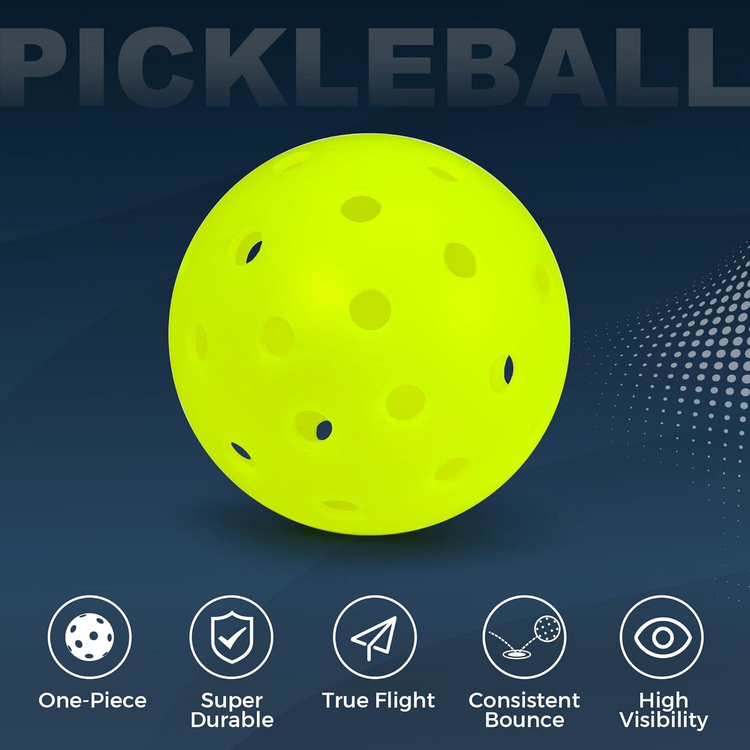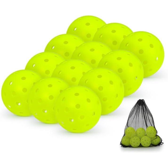 Sukeen Pickleball Balls Outdoor: Crack Resistant Pickleballs, One-Piece Seamless 40 Holes Pickleball, High Visibility Neon Pickleballs, Pickle Balls 12 Pack