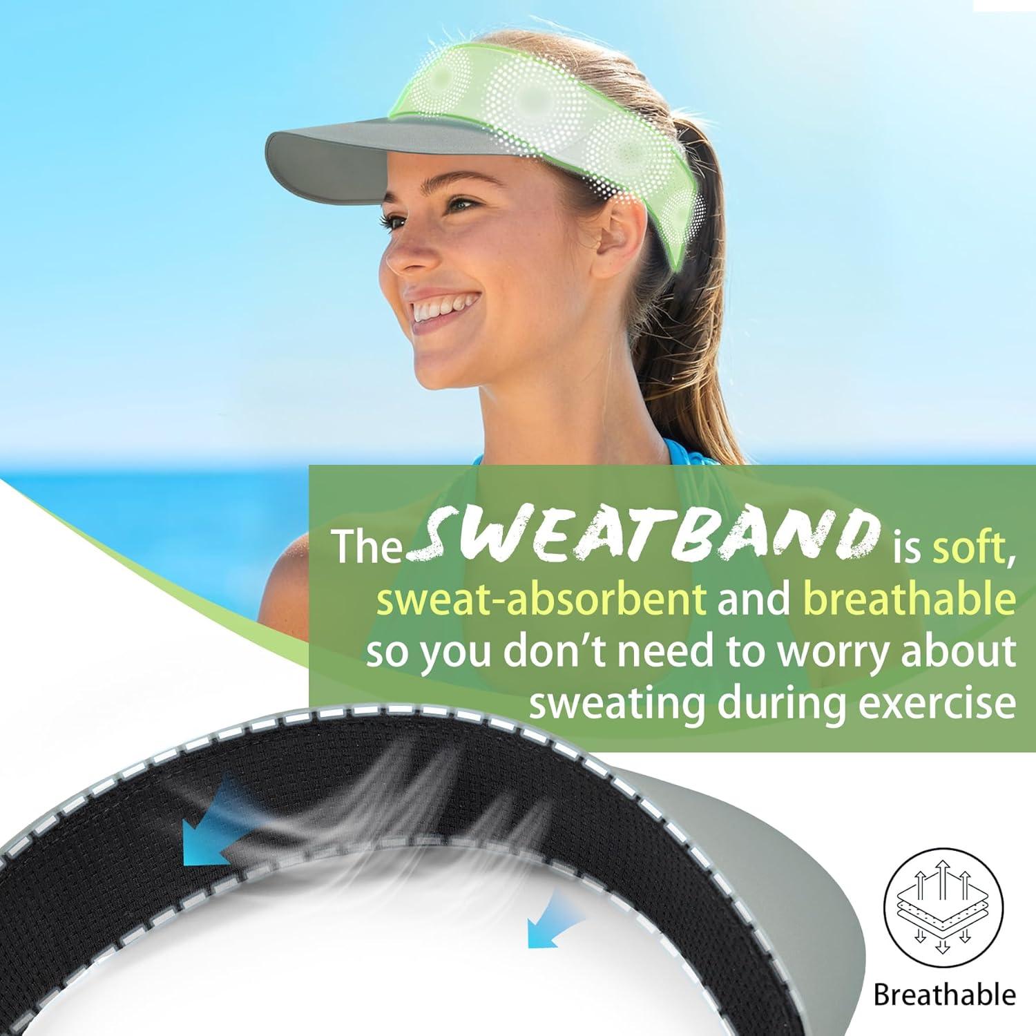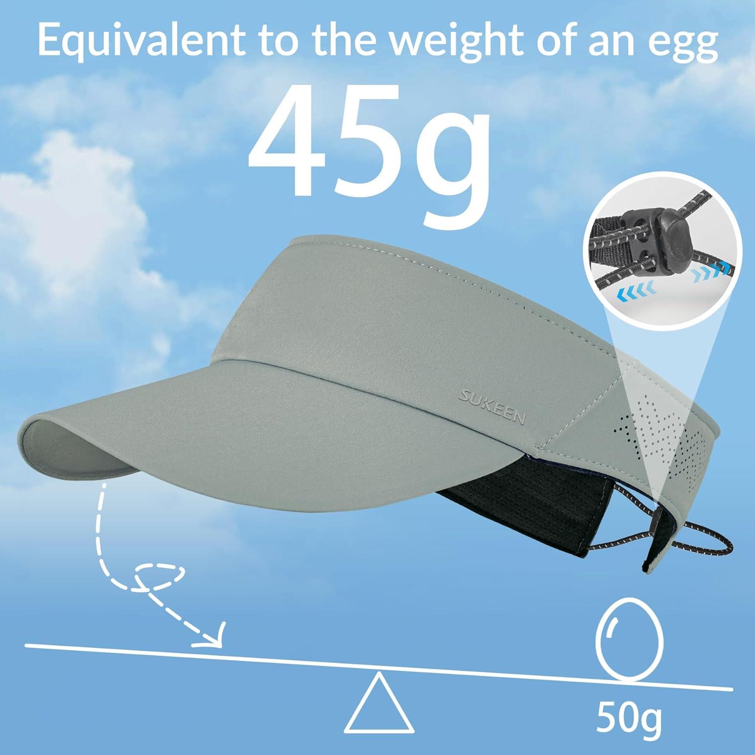 Sukeen Sports Sun Visor for Men Women Lightweight Empty Top Visor Hat Adjustable Packable Sun Hat for Golf, Daily Wear Grey