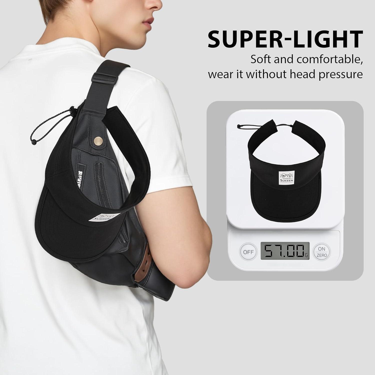 Sukeen Sports Sun Visor for Men Women, Lightweight Quick-Dry Outdoor Visor Hat, Packable Running Tennis Golf Visor(Black)