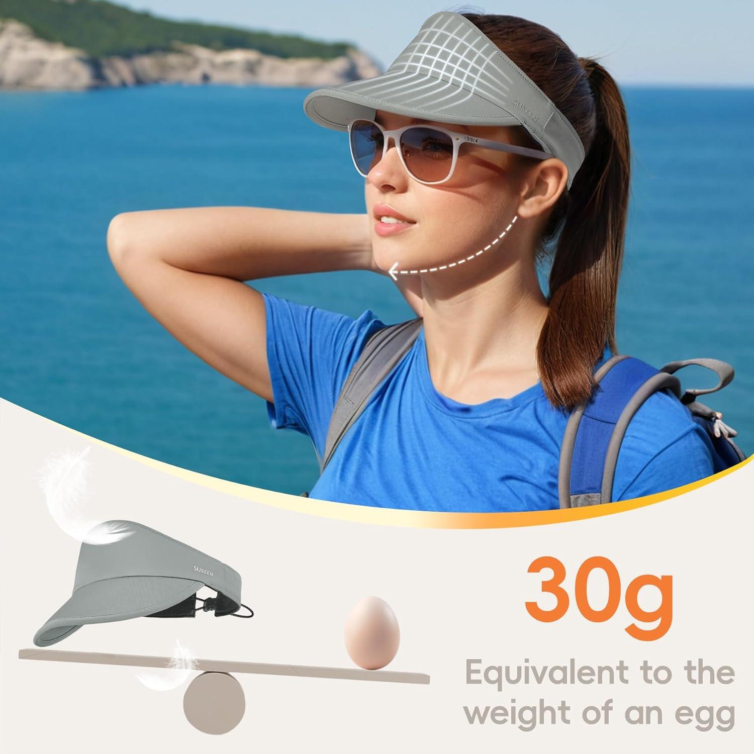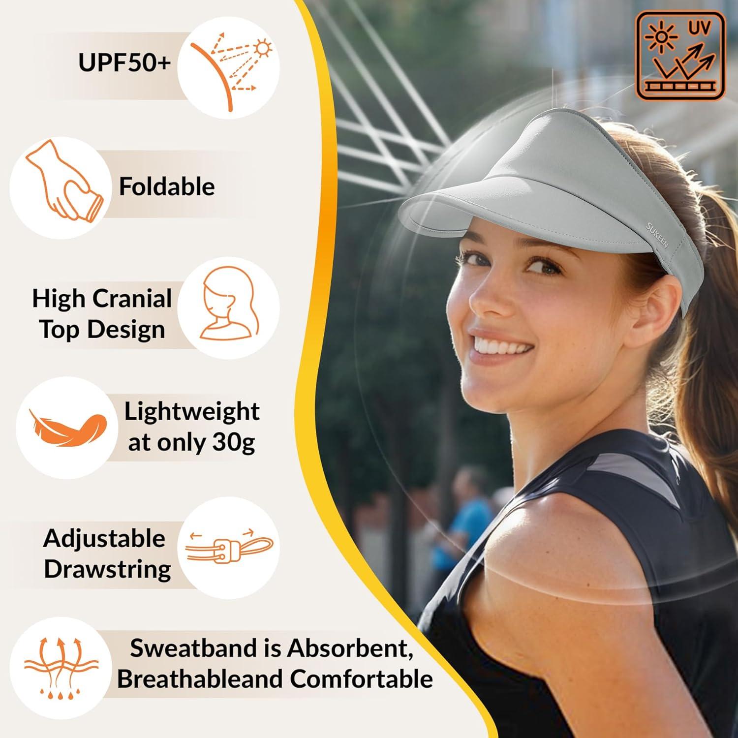 Sukeen Sports Sun Visor for Women Men Lightweight Packable Running Visor Hat for Running,Tennis,Golf,Hiking(Gray)