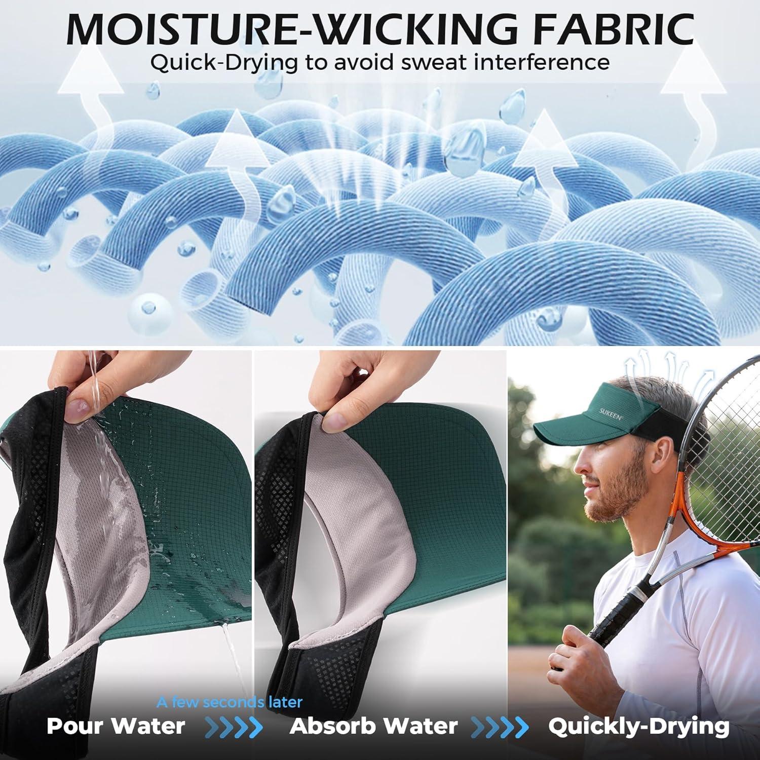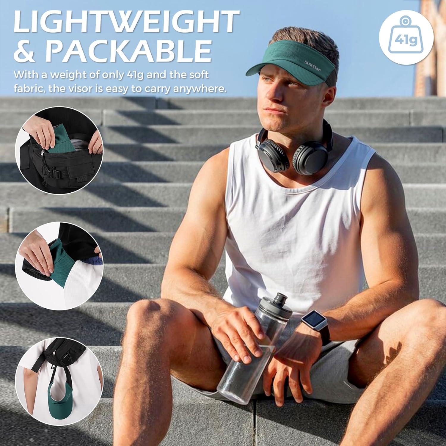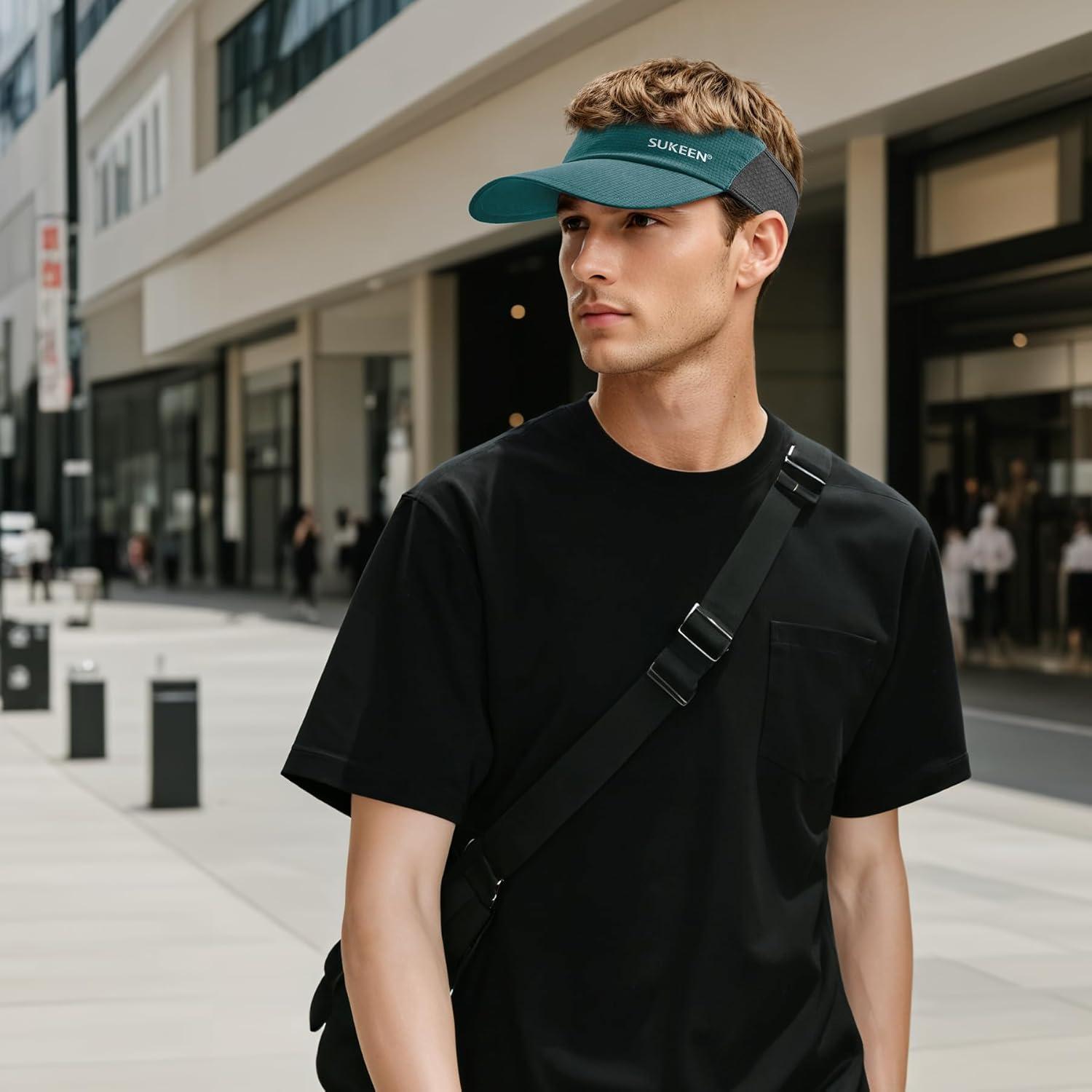 Sukeen Sun Visor Hat for Men Large Head Lightweight Cooling Stretchy Visor Hat for Running, Tennis, Golf, Daily Wear(Teal Blue)