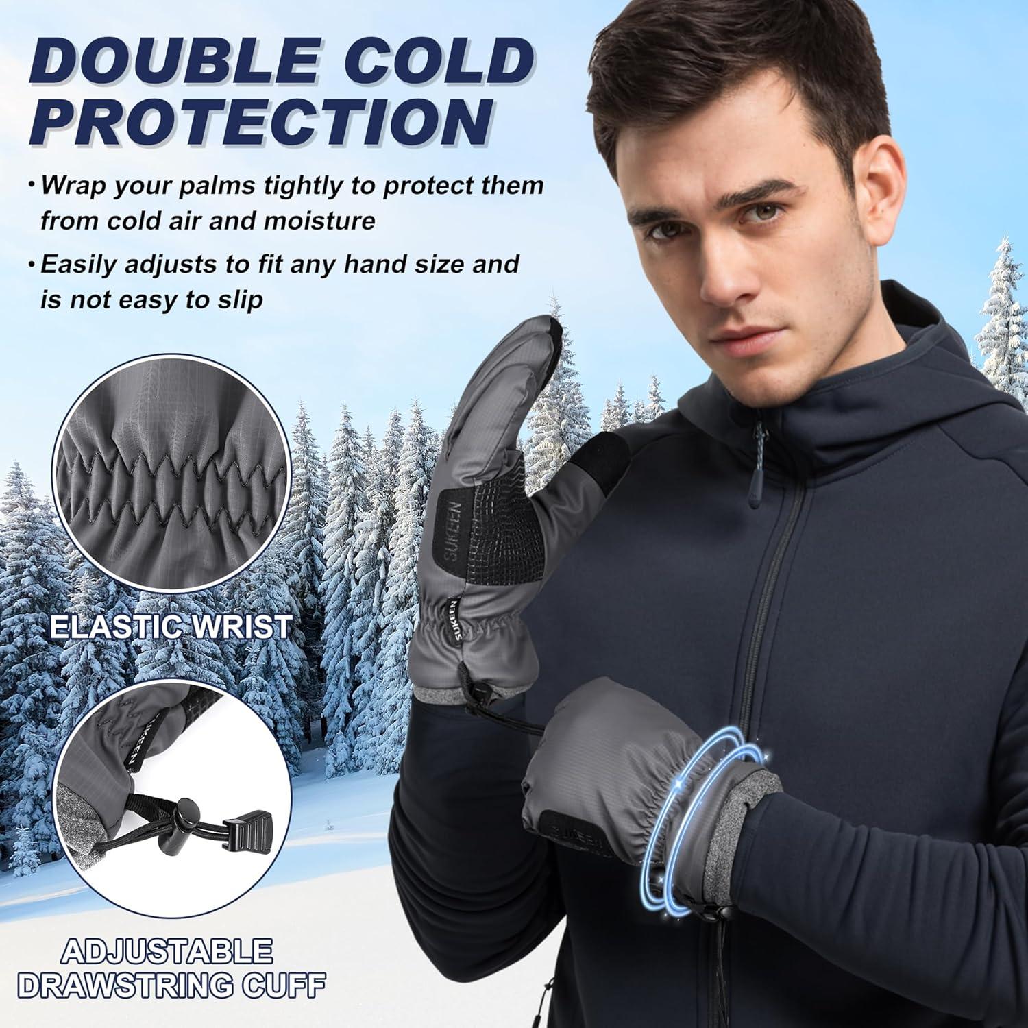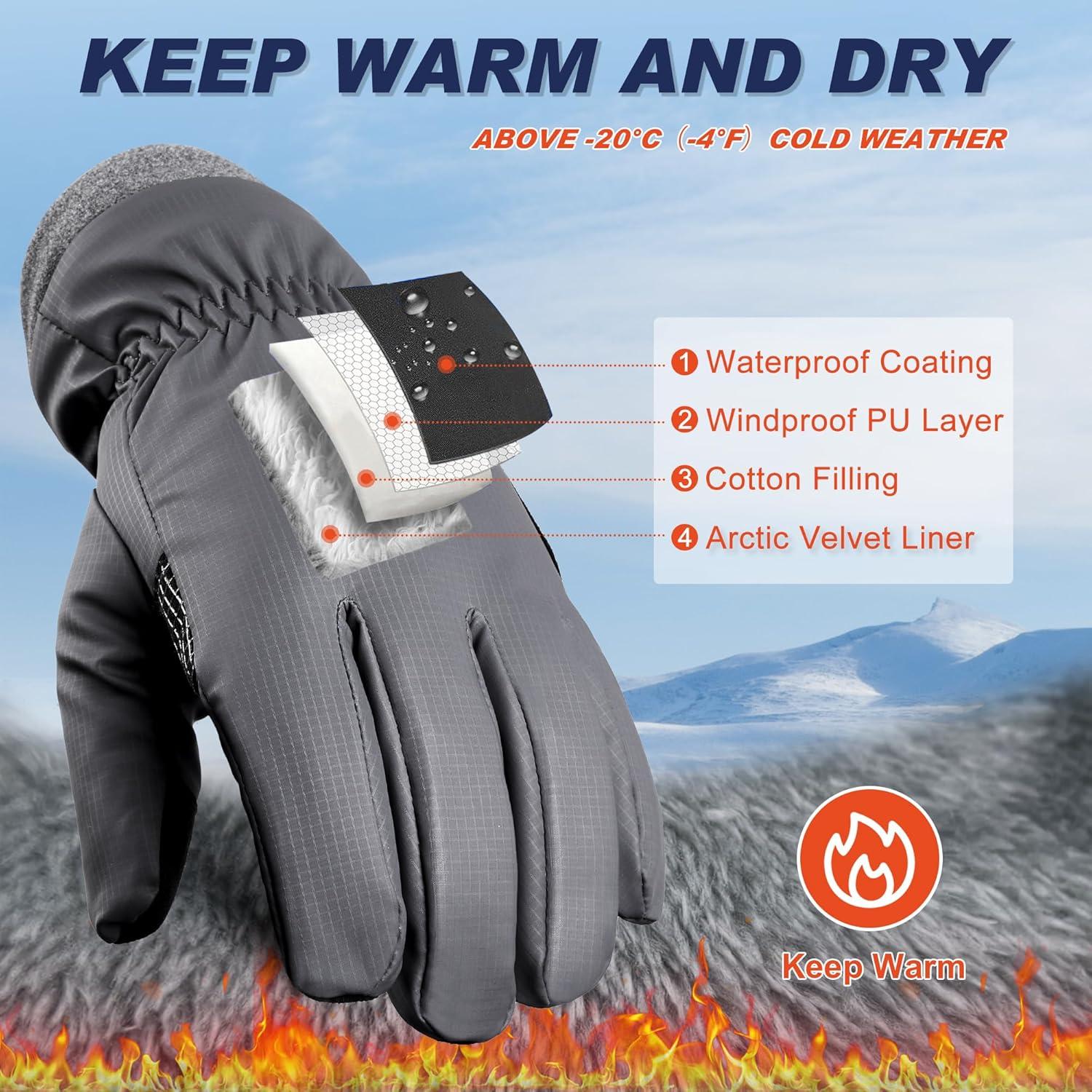 Keep Warm and Comfortable: Crafted with premium PU exterior, lined with a cozy grey arctic fleece lining and soft cotton filling, our windproof winter ski gloves for men women deliver exceptional warmth down to -4℉(-20°C), ensuring cozy hands all winter season long